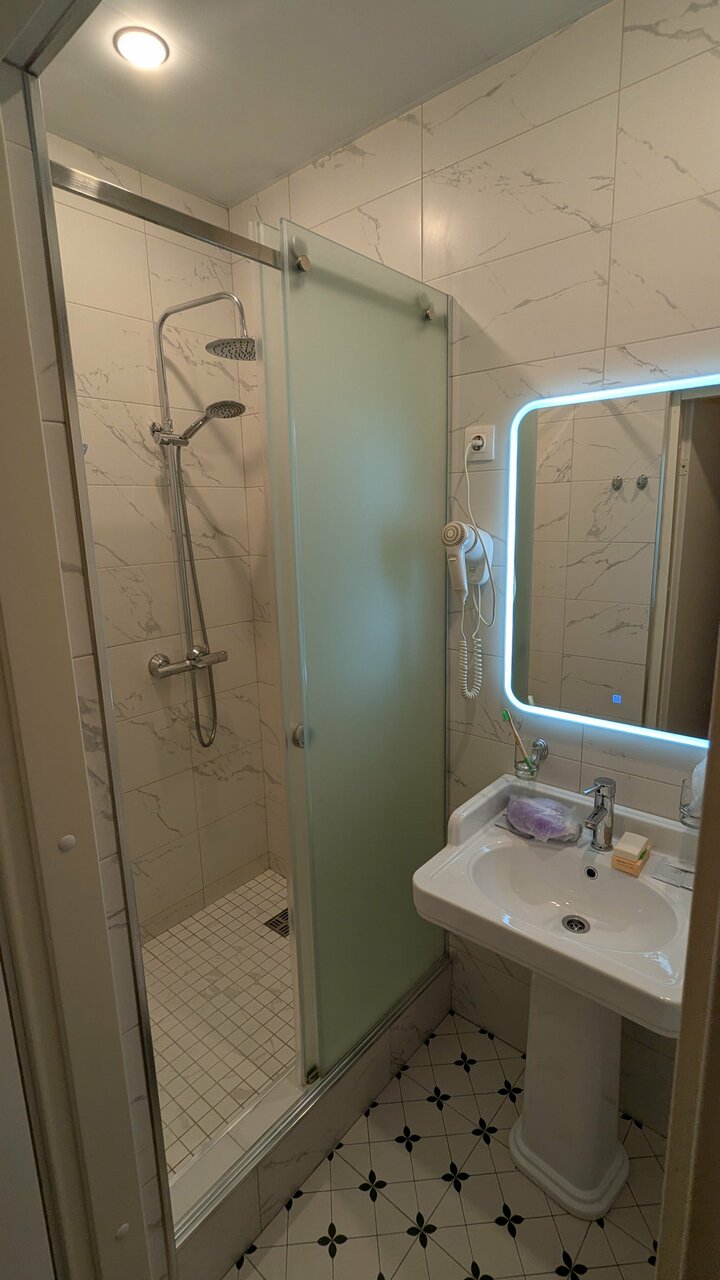 Номера чистенькие, с неплохим ремонтом. Хромает душ, там непонятное управление, живёт своей жизнью, долго сливается горячая вода. Завтрак в кафе рядом, но по содержанию слабенький.