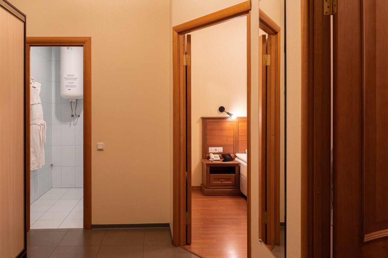 - Разные варианты номеров (стандарт, апартаменты)