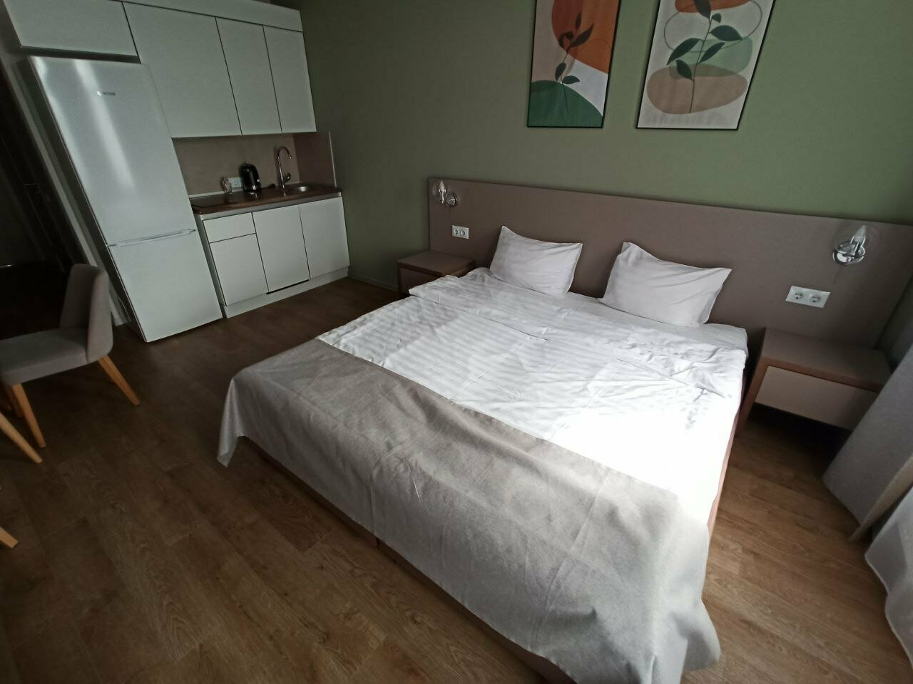 Приятные номера, по доступным ценам. Довольно спокойный район города. Есть платная и бесплатная парковка. Двухкомнатный номер с кухней, удобен для остановки семьёй. Рекомендую.