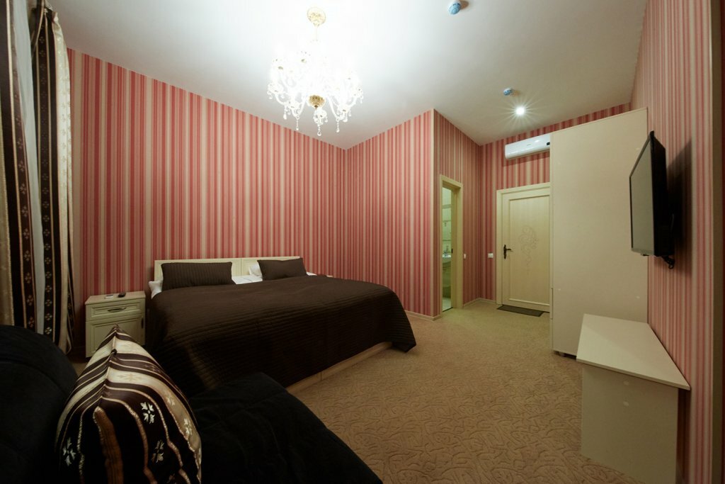 Расположен отель удобно, везде, при желании, можно пешком. Рядом есть отличный грузинский ресторанчик, Хачапури и вино, рекомендую к посещению. В номерах просто, но чистенько. Всего 4 или 5 номеров, все на первом этаже. Парковка во дворе, на 4 машины. Выезд из города довольно удобен. Завтраки однообразные, но сойдёт . Персонал очень дружелюбны и всегда помогут. В отеле тихо )