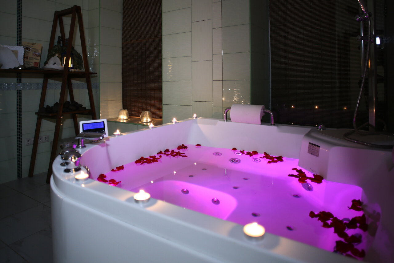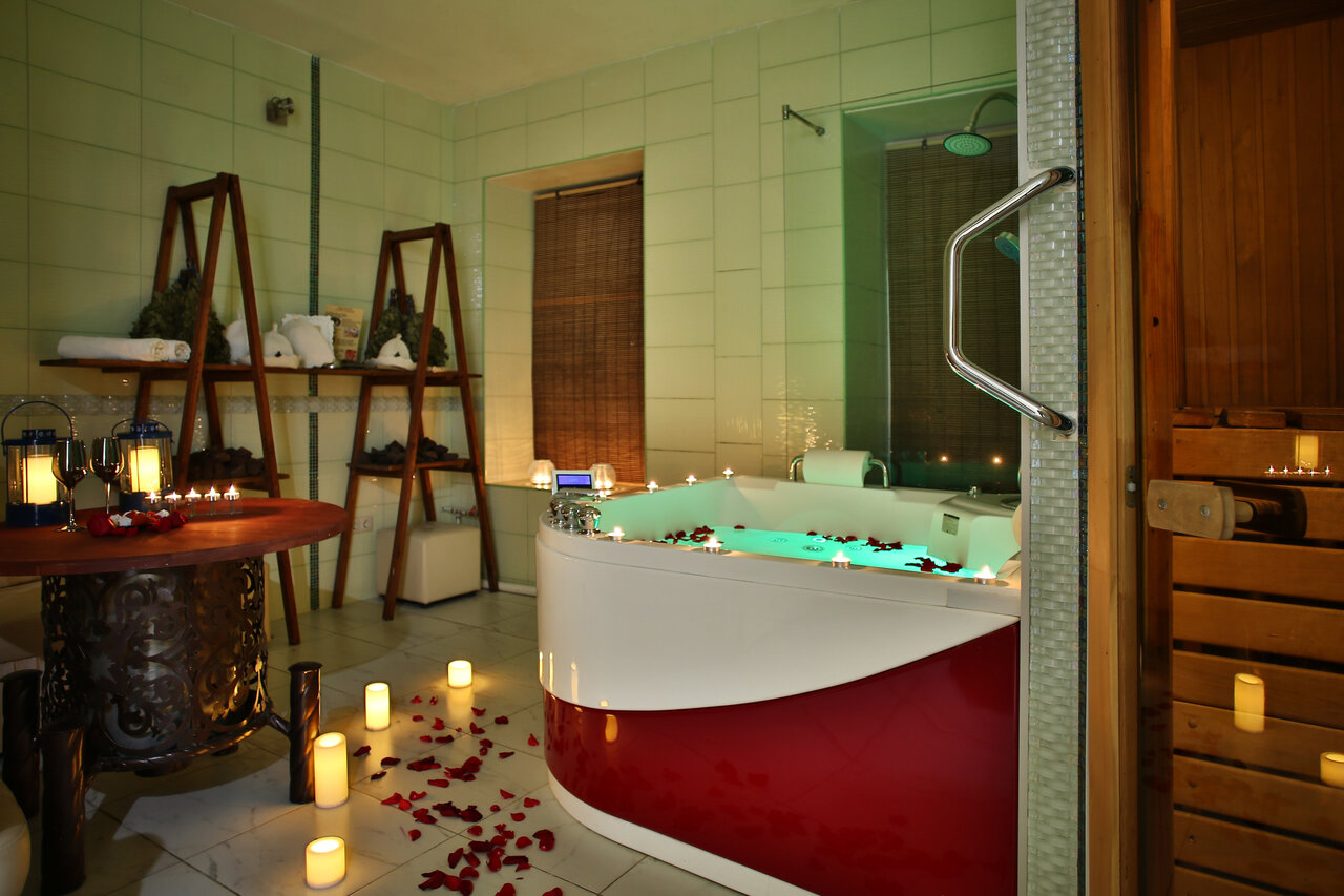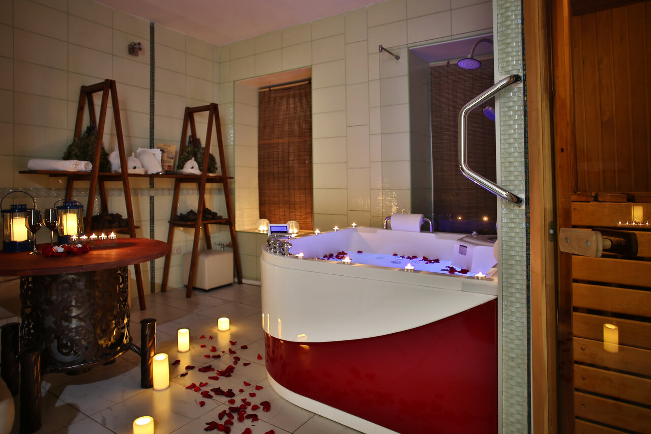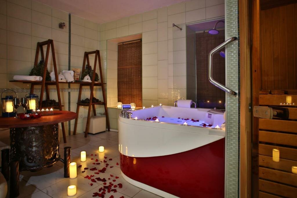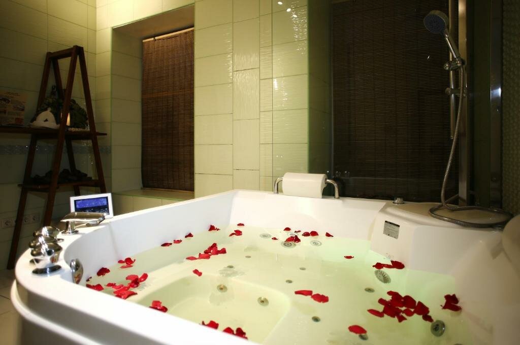 Отдыхали в номере с джакузи, очень приятная обстановка, уютный номер и вежливый персонал.