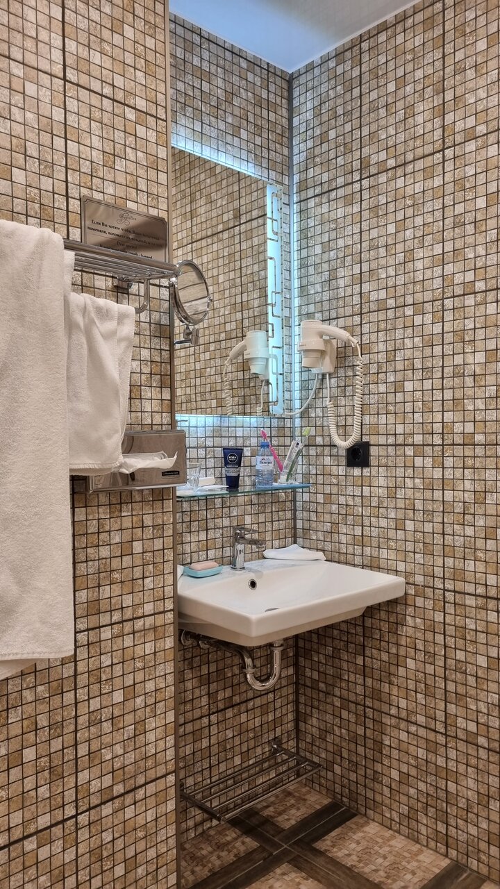 Хорошая гостиница в центральной части Питера, в 20-ти минутах пешком до метро, а на метро всего две станции до центра. Брали номер стандарт на двоих, с окнами во двор. Номер маленький, но уютный, не слышно шума с набережной, но соседей слышно всех! Особенно в ванной комнате, как будто там картонка, а не стена. Странный запах воды, но возможно это питерская или районная особенность. В остальном все понравилось.
