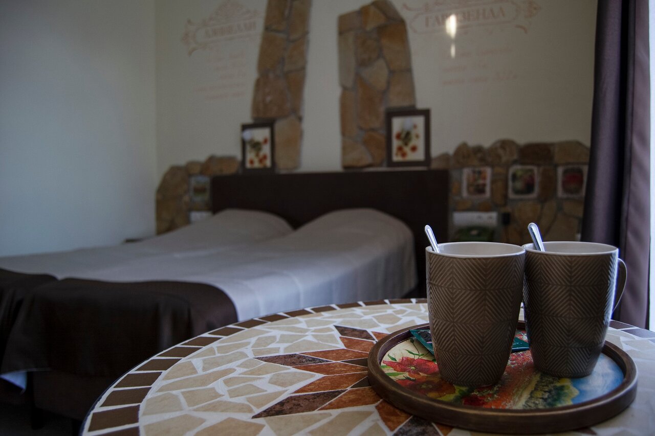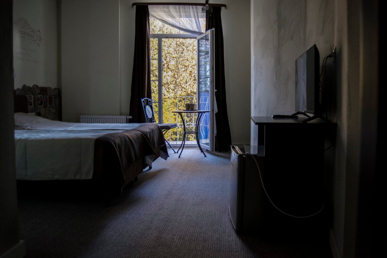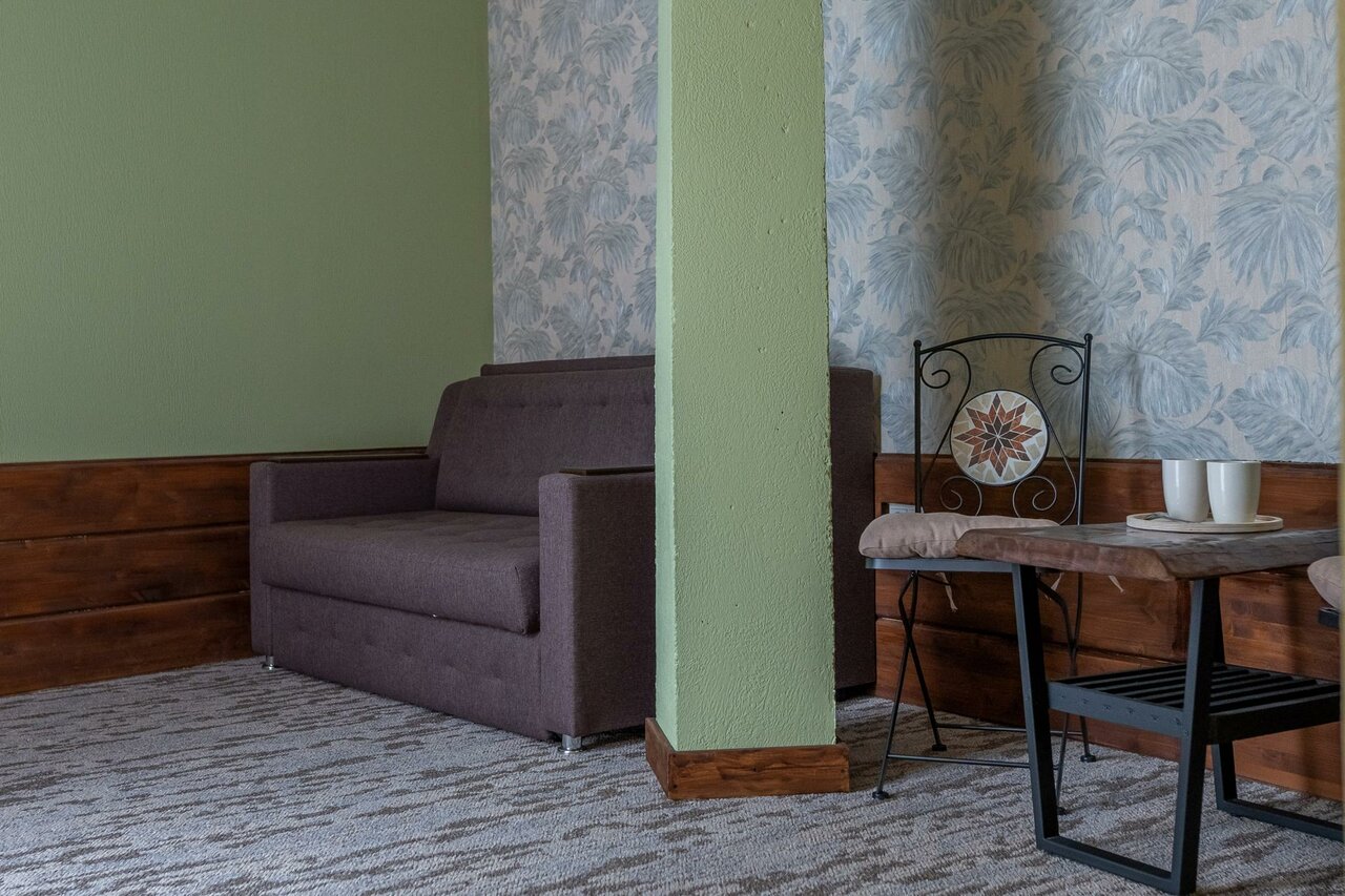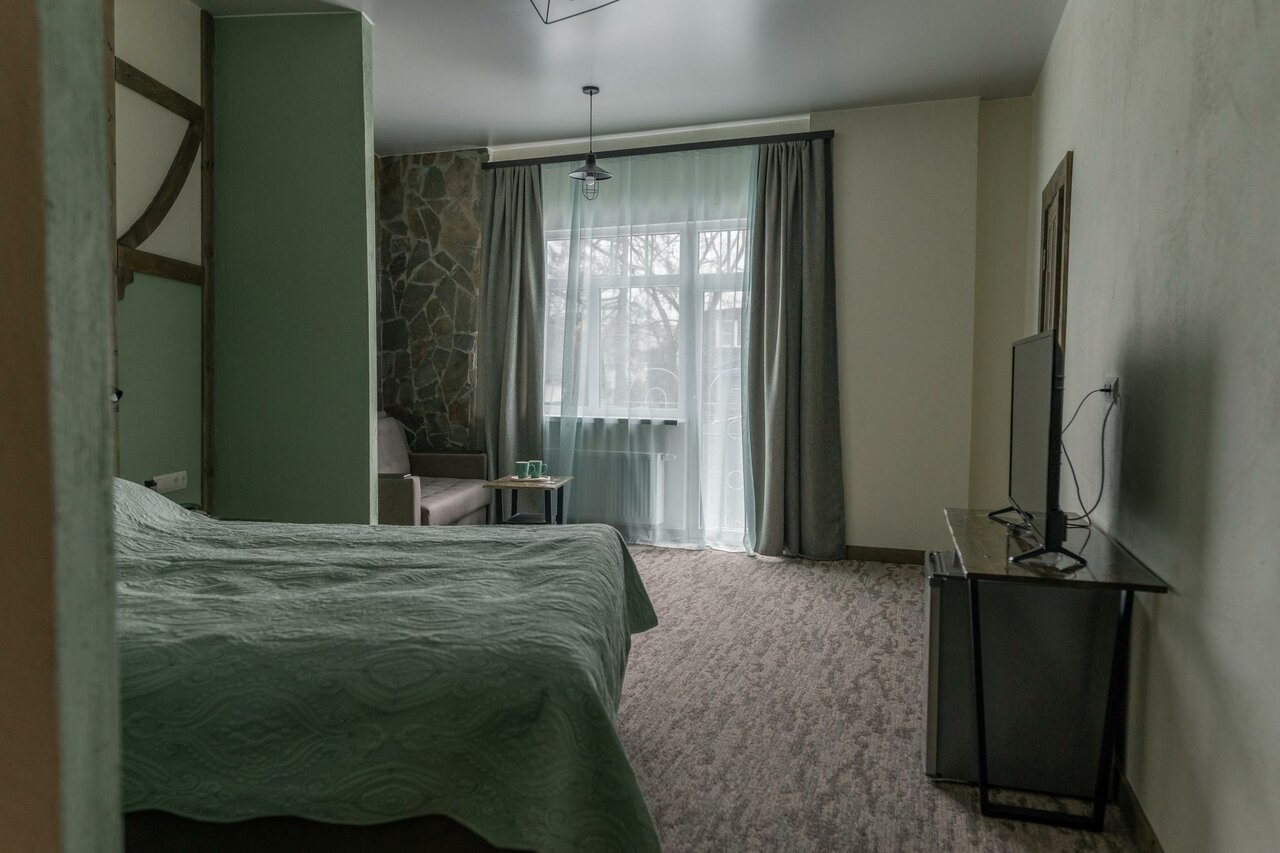 Уютный отель в тихом спокойном месте. Номера чистые, удобные. На завтрак была яичница, драники и сладкий рулет с кофе. Хорошее место, чтоб отдохнуть от шума и суеты. Правда добраться можно только на машине или такси.
