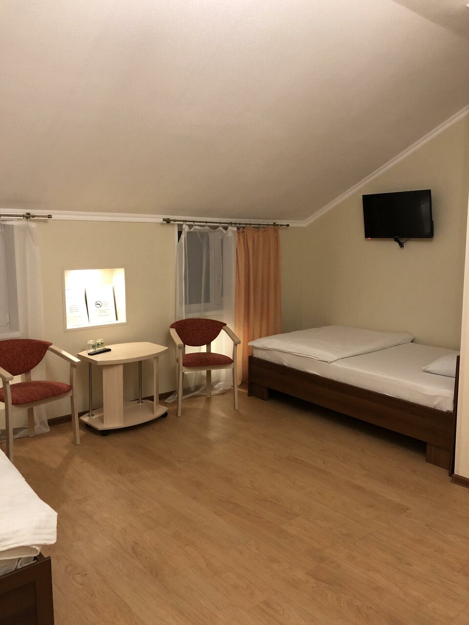 Персонал на 5+. Особая благодарность менеджеру Анне. Ни одна просьба или пожелание не остались без внимания. В номерах чисто, полотенца меняют каждый день. Завтраки вкусные. Есть общая кухня: холодильник, микроволновка, чайник, посуда. Из минусов: отсутствие поблизости сетевых магазинов, наличие ж/д путей поблизости.