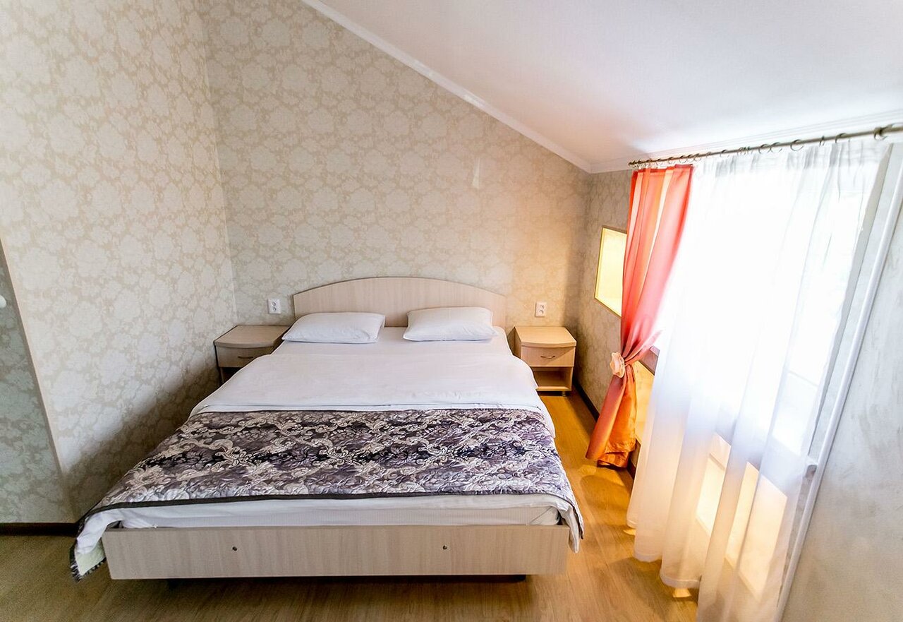 Услуги: — Номера (от 2500 ₽/ночь, 500–1000 ₽/час) с санузлом, звукоизоляцией, Wi-Fi, телевизором, феном, холодильником. — Питание: завтрак, полупансион или полный пансион, кафе, ресторан, детское меню, летняя веранда. — Бесплатная парковка, платный/бесплатный трансфер, общая кухня, прачечная, уборка. — Дополнительно: консьерж-сервис, сейф, сад, площадка для пикника.