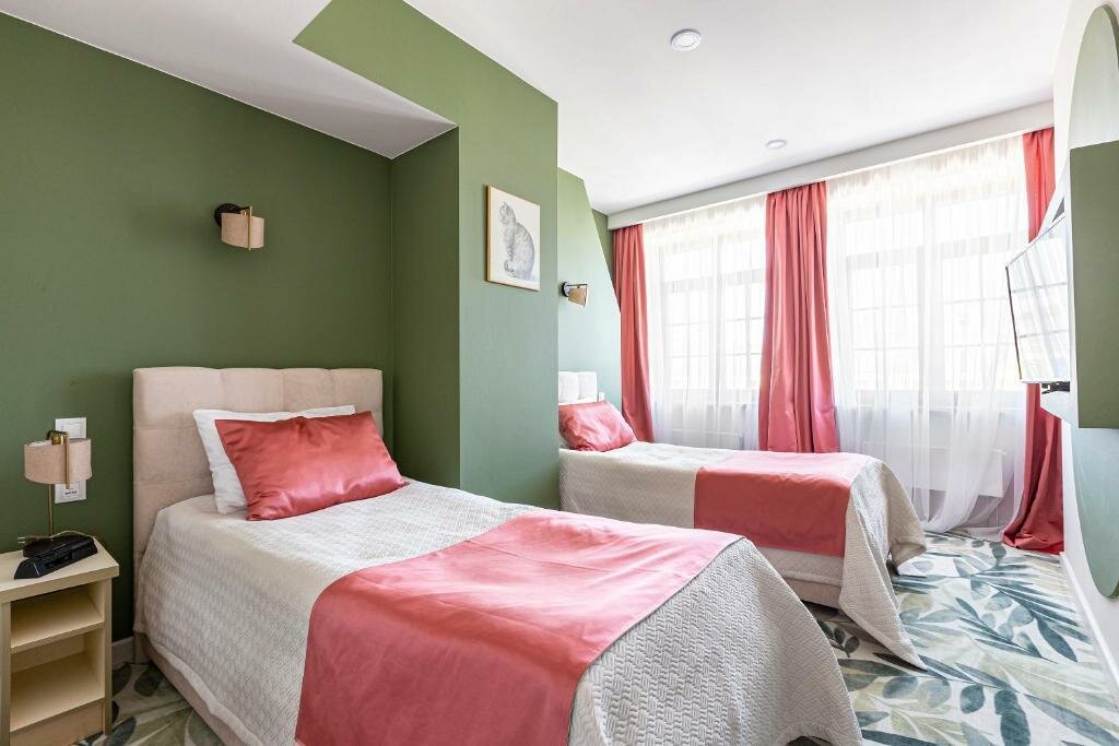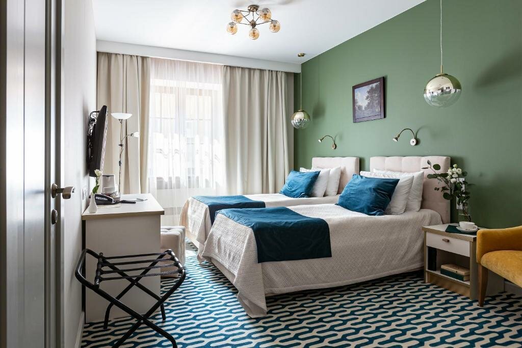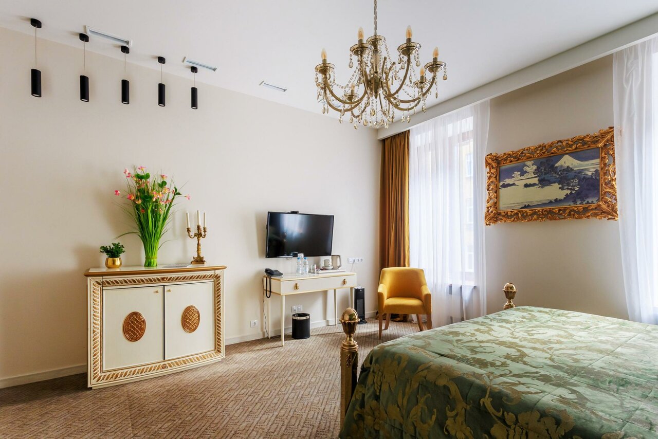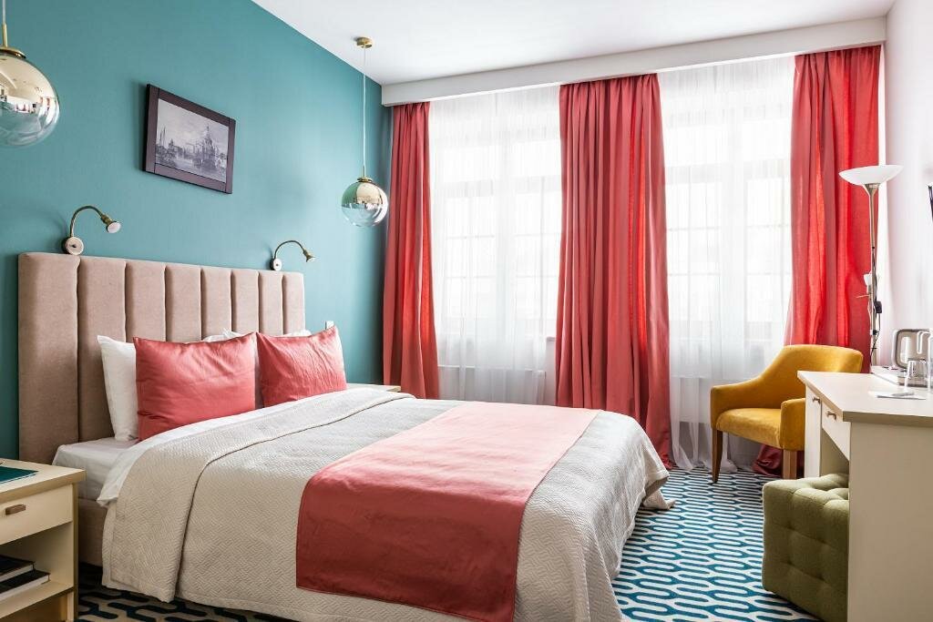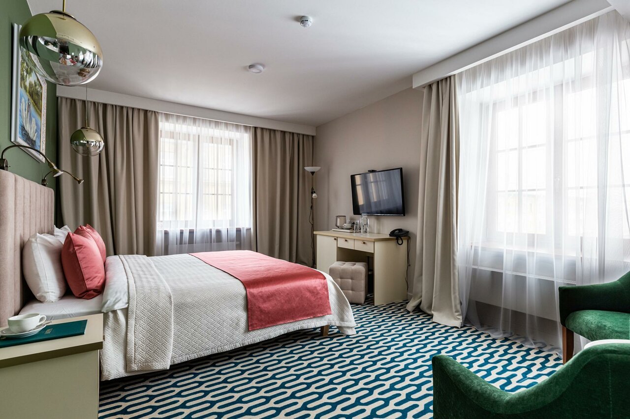 Отличный уютный, красивый отель в центре Питера, всё основное в общем то в пешей доступности. Останавливались на неделю, попали на очень тёплую погоду. Рядом очень хорошие рестораны, буквально в пределах 100 м, мы были в 3-х из них (о них отдельные отзывы). Сам отель классического интерьера со вкусом отделаны номера и ресторан. У нас был улучшенный стандарт. Уборка ежедневно, чай, кофе, вода. Завтраки с 7.30 до 10.30, всё вкусно, выбор хороший — нарезка, яйца в разных видах, каши, салаты, запеканка, овощи, сладкое и фрукты. Кофе из машины. На цокольном этаже есть сауна, массажные кресла, пользоваться можно без ограничений. Персонал крайне любезный. Всем от души советую данный отель.