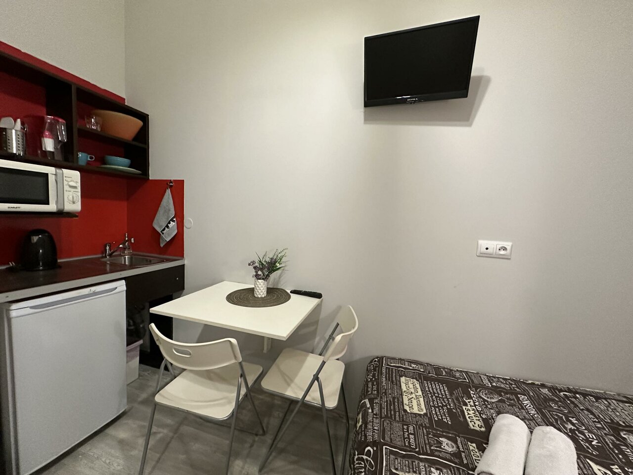 - Наличие мини-кухни (чайник, микроволновка, посуда, холодильник).