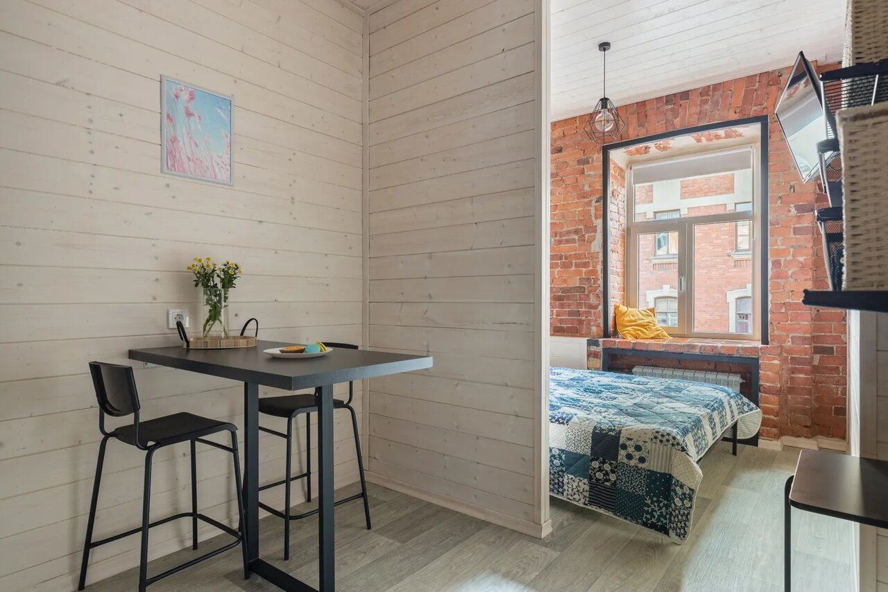 Думали, что забронировали студию в стиле лофт, с кирпичными стенами (как на 1 фото) за 1320 руб. + финальная уборка 1500 руб. Внесли предоплату 50% проживания по правилам бронирования. Позже нам написали и сообщили, что стоимость проживания будет выше и зависит она от даты бронирования. Когда приехали на место — лофта в студии не было, обычные дешёвые пластиковые панели на стенах. Оказалось, что по данному бронированию может любой номер, т.к. в объявлении есть и другие фотографии. Попросили дать нам другую студию — с доплатой дали трехместную с лофтом. Далее мы решили продлить бронирование ещё на 1 день, посмотрели цену на сайте за эту студию в нужный нам день