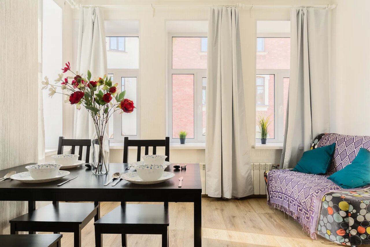 Отличные апартаменты, уровень хорошие 3*. Все новое, от белья и сантехники, до посуды и хододильника. Локация на 5. Метро Садовая 500метров, Спасская 700метров. Хозяин оперативно подтверждает бронь. В номере чай, мелочи разные хоз.и кухонные. Все новое, чистое. Уборка идеальная. Всем спамибо, рекомендую. Из минусов шумно , окна на улицу. Не все могут в шуме спать, при бронировании учитыапть нужно сразу, чтобы не обижаться потом…