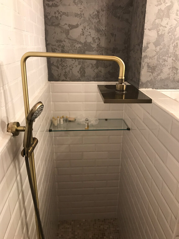 Несмотря на своеобразную конфигурацию отеля — четыре парадных, по три номера в трех из них, и еще один в четвертом, где ресепшен — отель понравился. Номера просторные, комфортные, необычного дизайна. Совершенно невероятные слэбы с юга России — из них сделаны столы, тумбочки при кроватях, основания раковин в санузлах. Внимательные и шустрые девчонки на ресепшене угостят вас бесплатным кофе. Завтраки за отдельную плату носят из ‘Вилладжио’ по соседству, но я предпочел прогуляться туда сам — это 3 минуты пешком