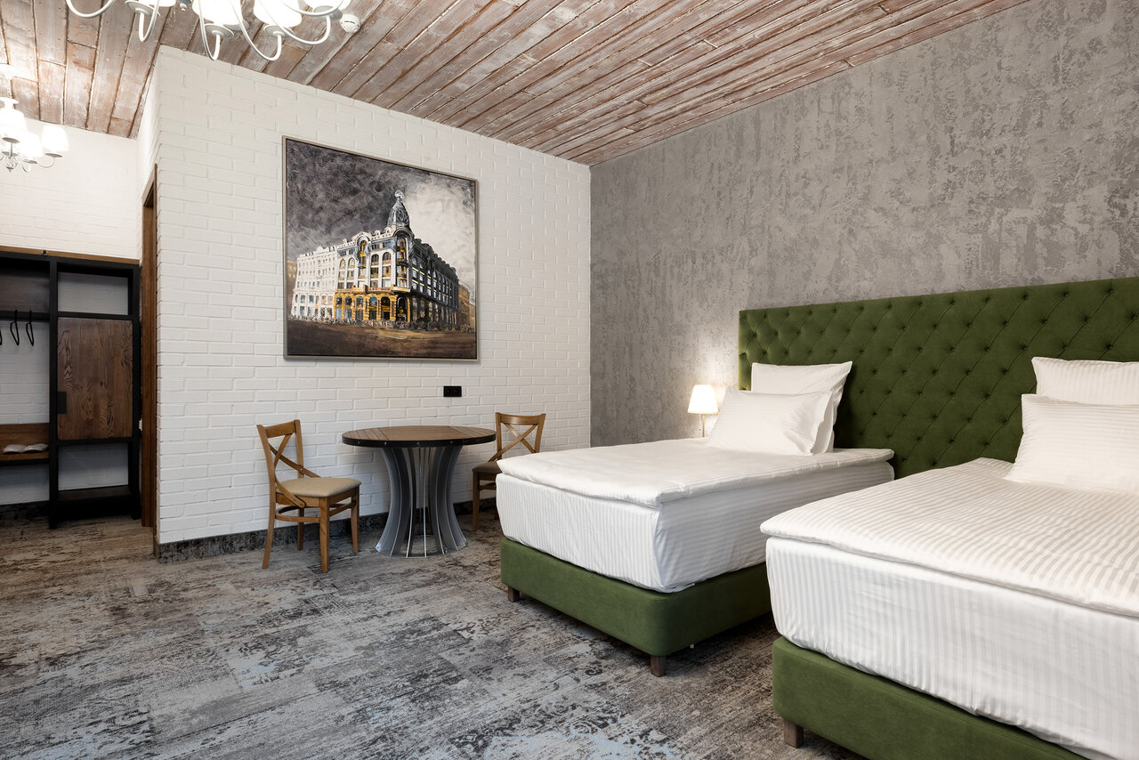 Крутой небольшой отель. Вил из окон не очень и завтрака нет, но чудесный интерьер, персонал понимающий и маленькое количество соседей. Отель сделан в три парадные, в каждой парадной по 3 номера. Поэтому вероятность шумных соседей не очень высокая) удобное расположение. Жаль, что нет парковки, но рядом есть городская.