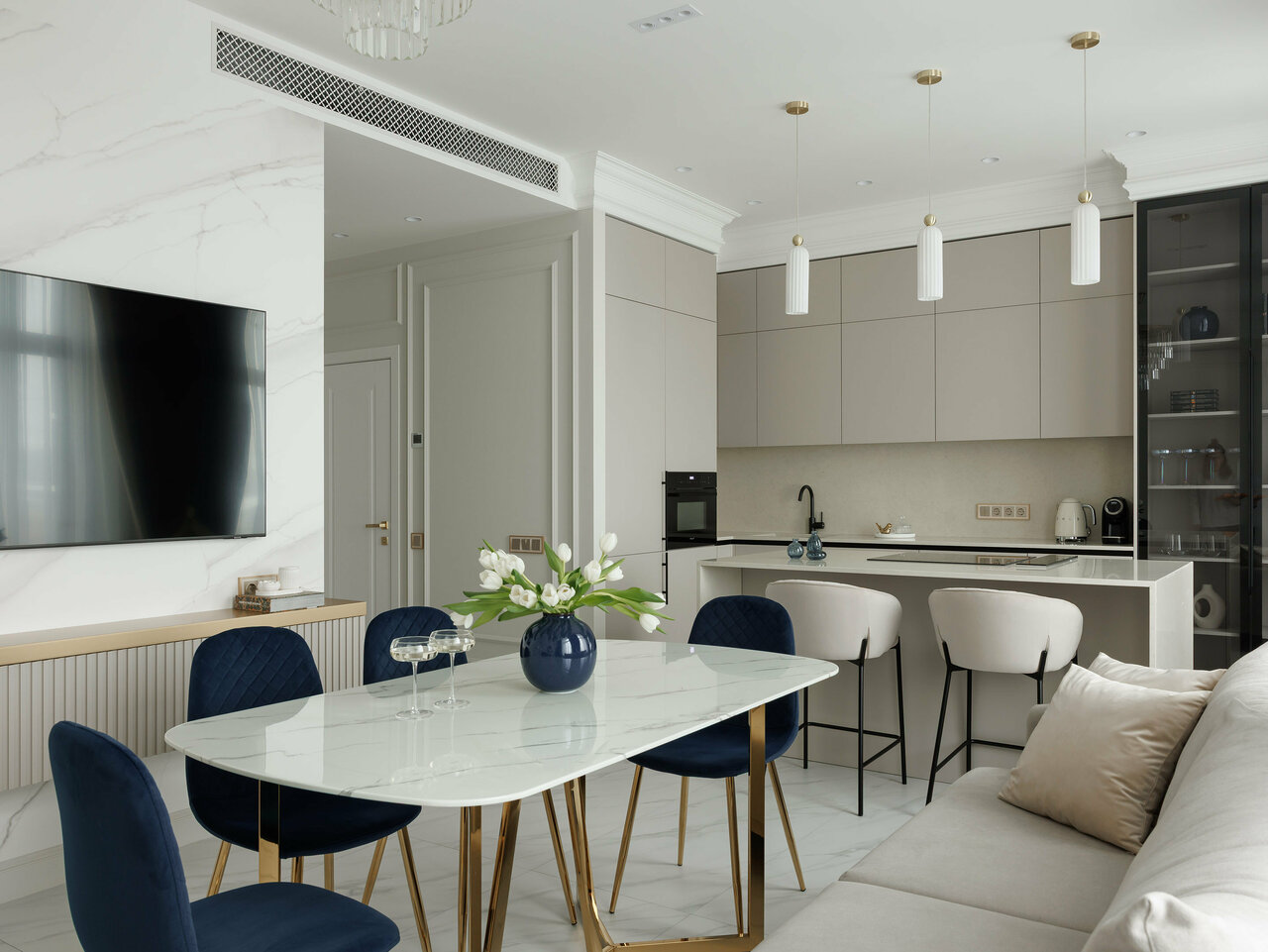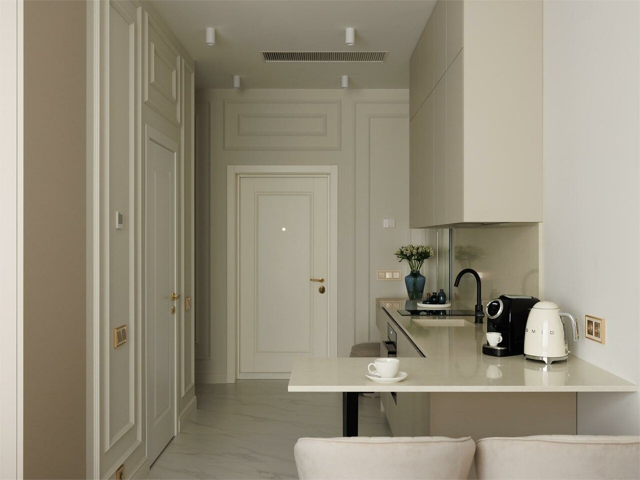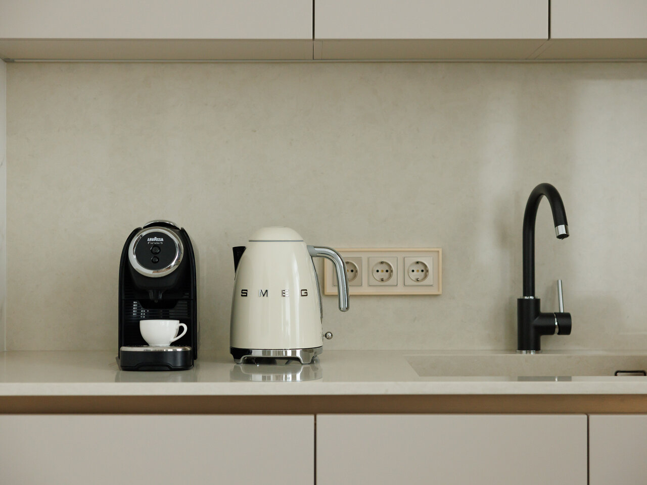 - Наличие мелкой бытовой техники (чайник Smeg, капсульная кофемашина, фен Dyson).