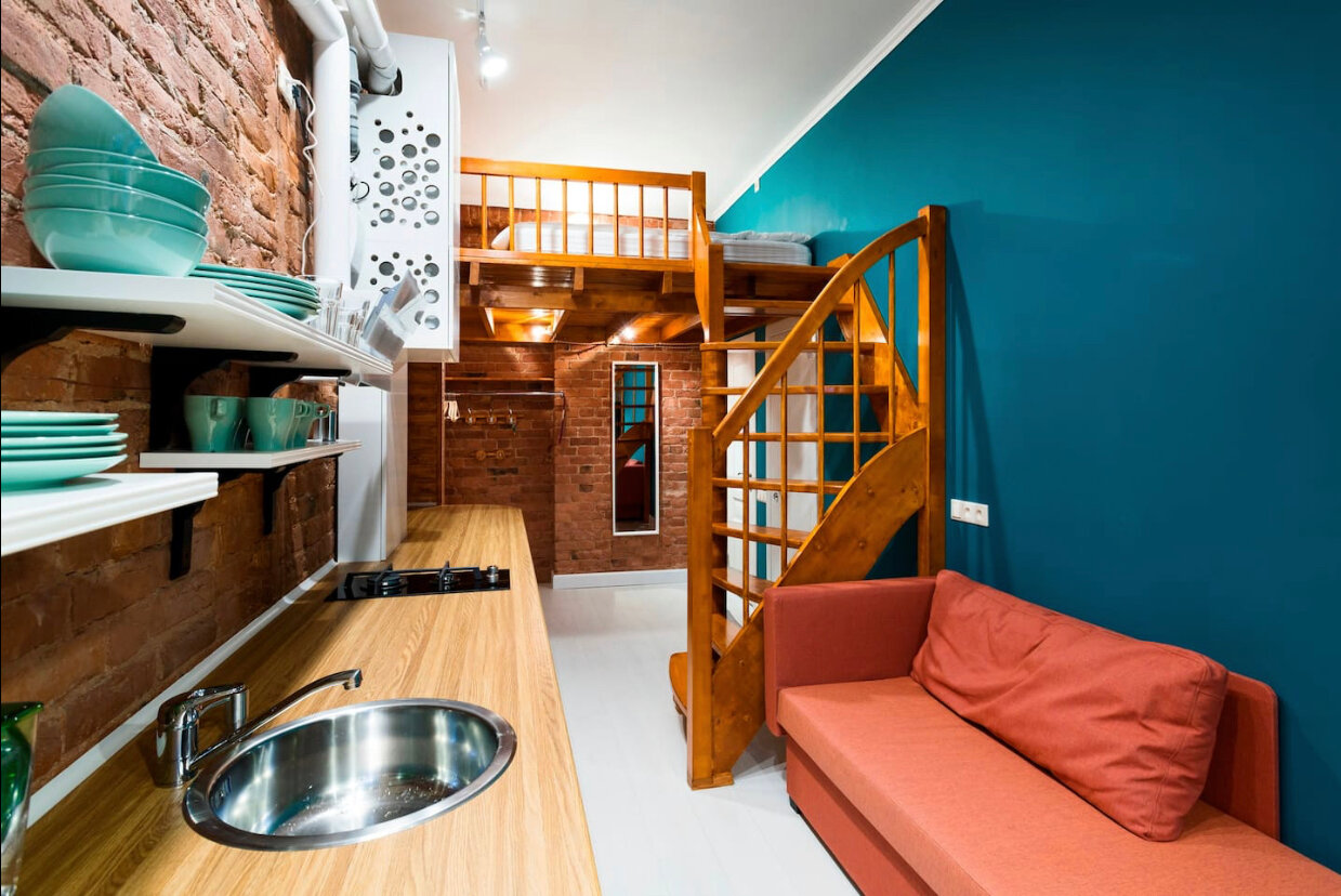 Яркие компактные двухуровневые апартаменты для 3 человек со всеми удобствами в самом центре Санкт-Петербурга, всего в 10 минутах ходьбы от Московского вокзала и через дорогу от метро.