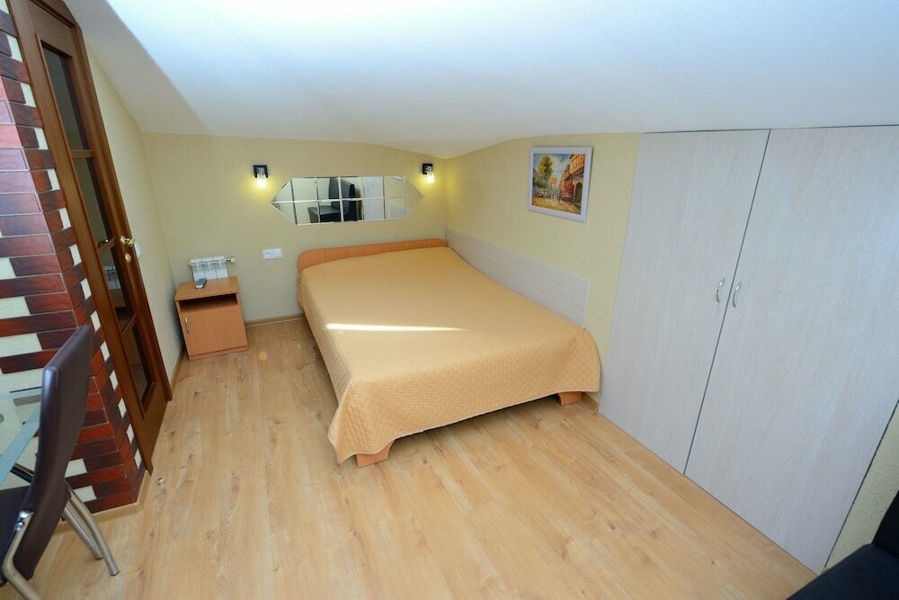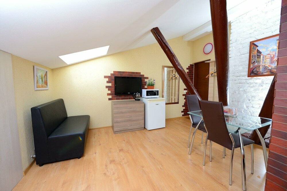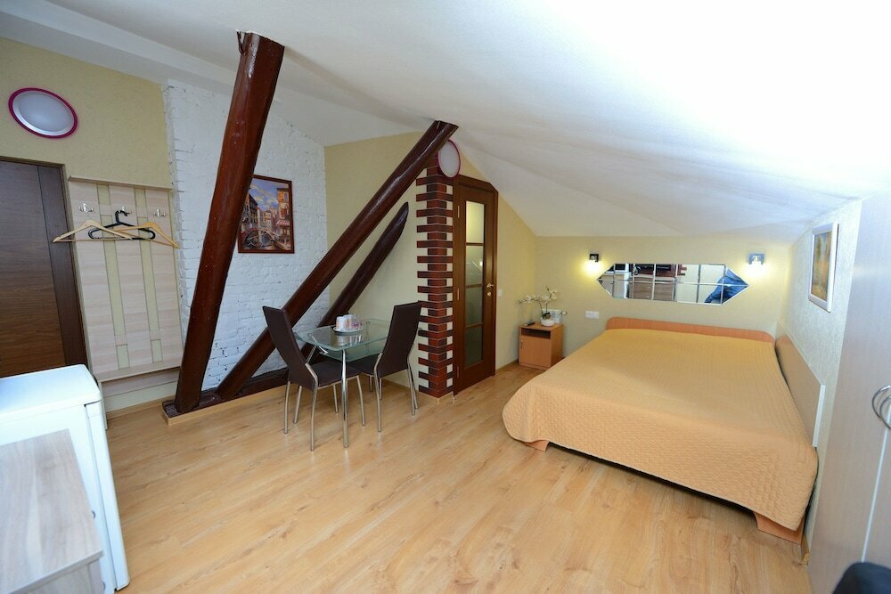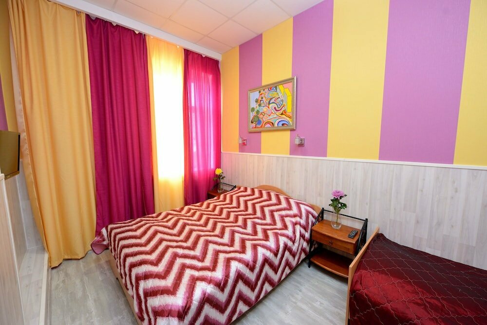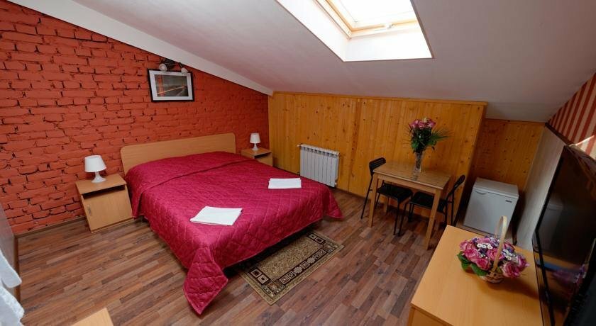 Забронировали номер в этой гостинице. И очень об этом пожалели….Гостиница на 4 этаже. Чемодан нести тяжело. Самим. Лестницы крутые. Встретила нас недовольная администратор и отвела в ‘кукольный номер’ на мансарде без окон и дверей. Нет дверь входная была ,но ее можно выбить с ноги….и окно был квадратик забитый фанерой…Дышать в этом номере невозможно. Жить тем более. Ванна,вернее,душевая с тараканами …,маленький туалет …..в номере,в стене дыра и номер крошечный. Подушки,как блины…..за 2200 нет даже холодильника ,туалет и душевая на этаже…..Проще снять квартиру посуточно за эти же деньги и все удобства иметь под рукою. Переночевав в этом номере так как было 12 ночи мы уехали на следующий день. Номер на мансарде в углу не советую никому!!!