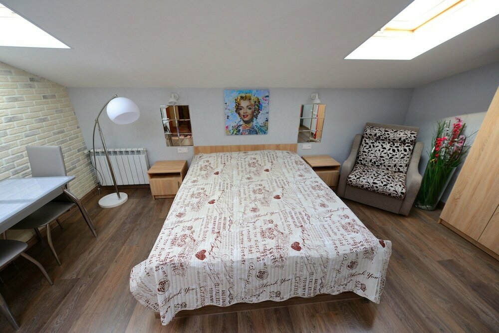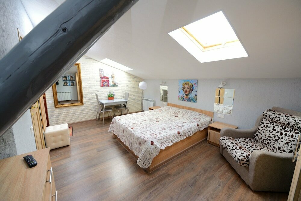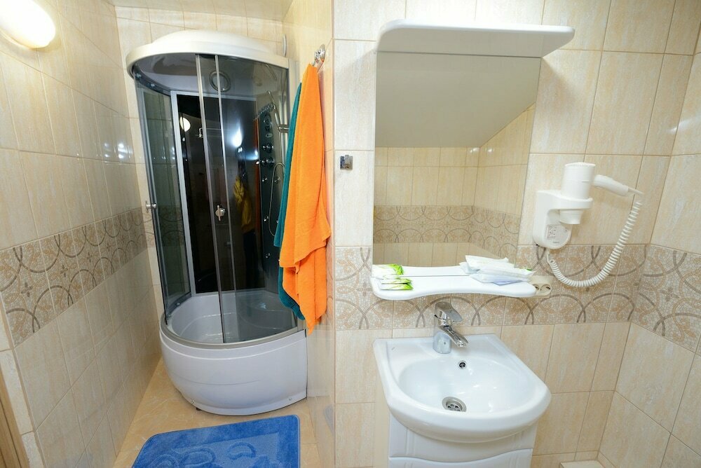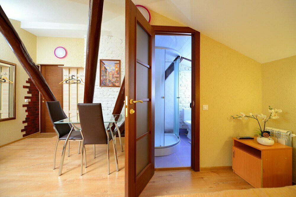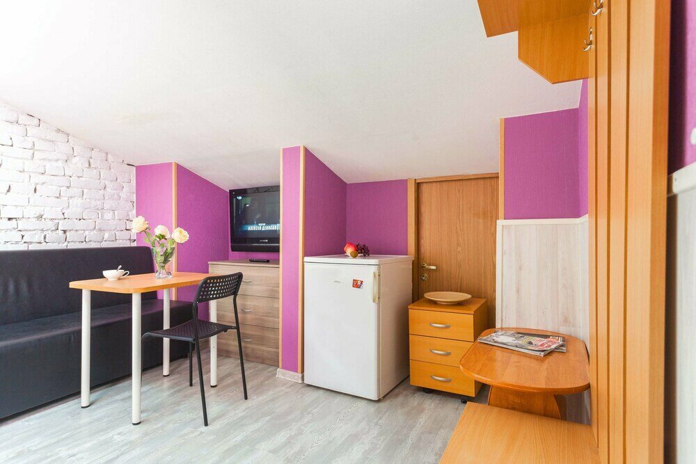 Забронировали номер в этой гостинице. И очень об этом пожалели….Гостиница на 4 этаже. Чемодан нести тяжело. Самим. Лестницы крутые. Встретила нас недовольная администратор и отвела в ‘кукольный номер’ на мансарде без окон и дверей. Нет дверь входная была ,но ее можно выбить с ноги….и окно был квадратик забитый фанерой…Дышать в этом номере невозможно. Жить тем более. Ванна,вернее,душевая с тараканами …,маленький туалет …..в номере,в стене дыра и номер крошечный. Подушки,как блины…..за 2200 нет даже холодильника ,туалет и душевая на этаже…..Проще снять квартиру посуточно за эти же деньги и все удобства иметь под рукою. Переночевав в этом номере так как было 12 ночи мы уехали на следующий день. Номер на мансарде в углу не советую никому!!!