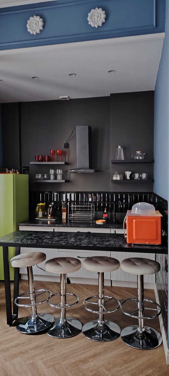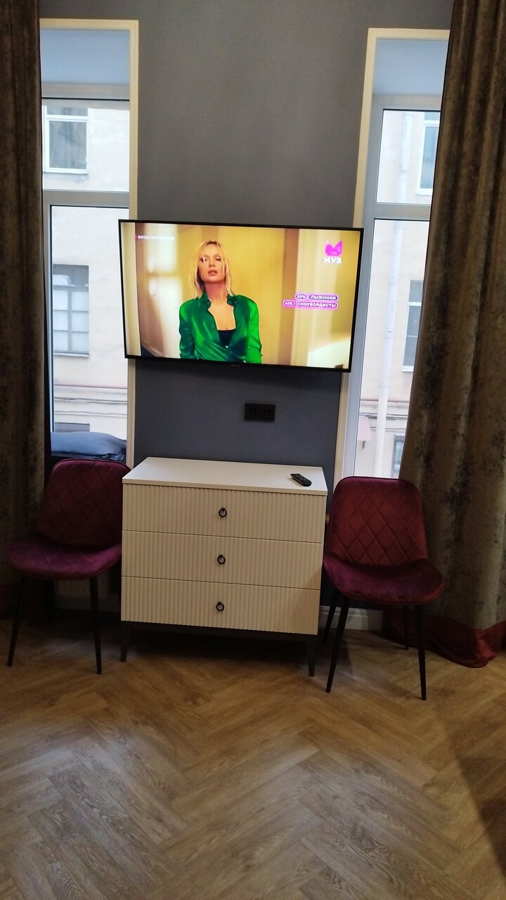 Мне прямо очень понравилось. Интерьер- дизайн — выше всяких похвал, техника — есть всё необходимое (микроволновка, плита, посуда, холодильник, фен, утюг, большой телевизор с кабельными каналами, хороший WiFi ) и инструкции где что лежит. Местоположение- прямо в самом сердце Петербурга. Рядом много кафе и ресторанов на любой вкус, так же рядом два супермаркета, где можно купить готовую еду. Так как окна во двор колодец, те окна в окна практически, то был дискомфорт, что кто-то подглядывает , Шикарные шторы, но с боков необходимо подтыкать чем-то постоянно . Есть вариант- римские шторы (вариант жалюзи). Просто идея на заметку собственникам. А так спасибо за великолепный отдых как дома. Обязательно ещё воспользуюсь и буду рекомендовать друзьям. Отдыхала 2 дня. Очень качественный матрас, люстра — произведение искусства Отдыхала в середине октября, номер студии 1. Это квартира поделенная на 3 независимые студии. Никого из соседей не видела и не слышала.