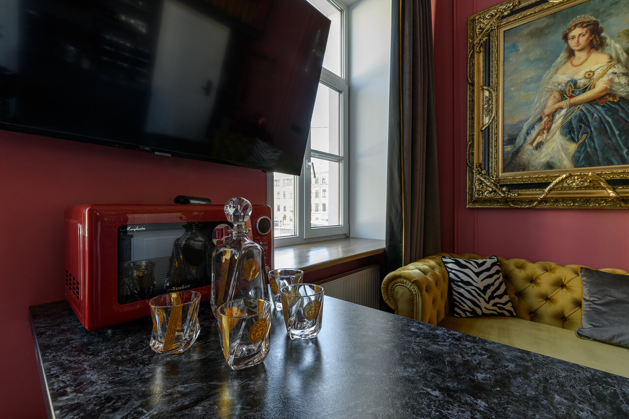 Замечательный во всех отношениях номер. И расположение, и стилистика самого номера создают ошущение аристократичного Питера. Мы в восторге. Очень чисто, прекрасное постельное белье и полотенца. Удобная миникухня, где можно сварить кофе и пить, любуясь на Казанский собор и слушая музыку с Невского. Рекомендую всем! Спасибо владельцам за подаренное удовольствие! Вы-лучшие!!!
