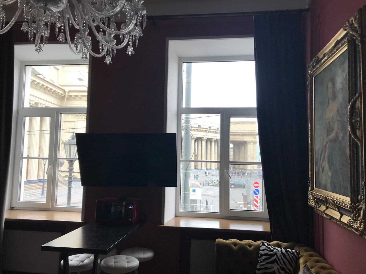 - Очень чисто, качественное постельное белье и полотенца.; Отличное расположение в центре города, все в шаговой доступности.; Современный сервис и продуманный интерьер.; Качественный матрас и красивая люстра.; Удобная мини-кухня с видом на Казанский собор.