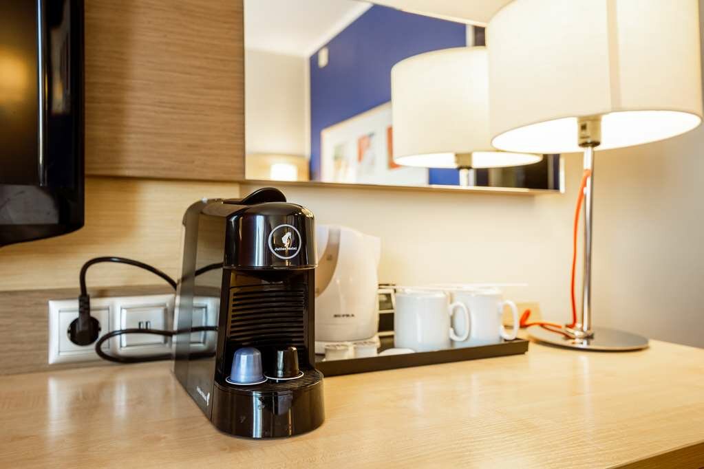 - В номере есть необходимые принадлежности (фен, чай, кофе, вода, гель, шампунь, зубной набор).