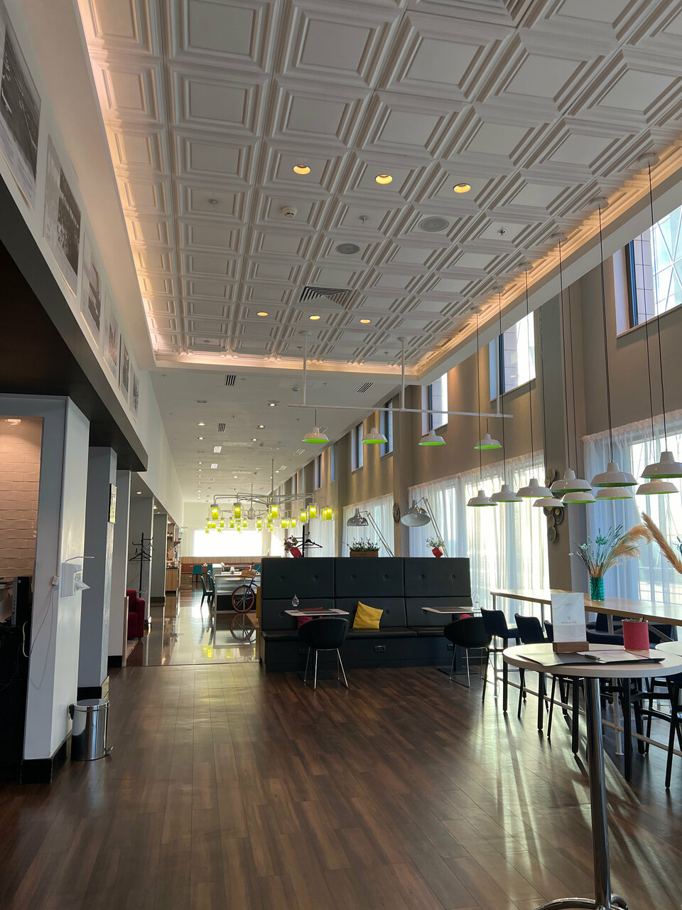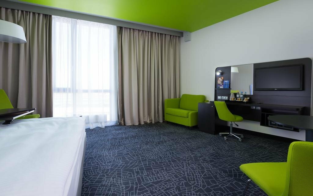 В отеле приятная атмосфера, чувствуешь себя как дома. Хорошая шумоизоляция, не слышно даже шагов по коридору. Шведский стол на ужин порадовал, блюда представлены по принципу правильного питания — много овощей, зелени, фруктов. Единственное, выбор напитков был ограничен, соки отсутствовали. По поводу шумоизоляции ещё хотелось бы добавить. Т.к.отель находится на территории аэропорта, думала, будет очень некомфортно из-за гула часто взлетающих и прищемляющихся самолётов, но я была приятно удивлена — шума практически не было слышно. Рекомендую отель в качестве комфортного отдыха перед полётом.