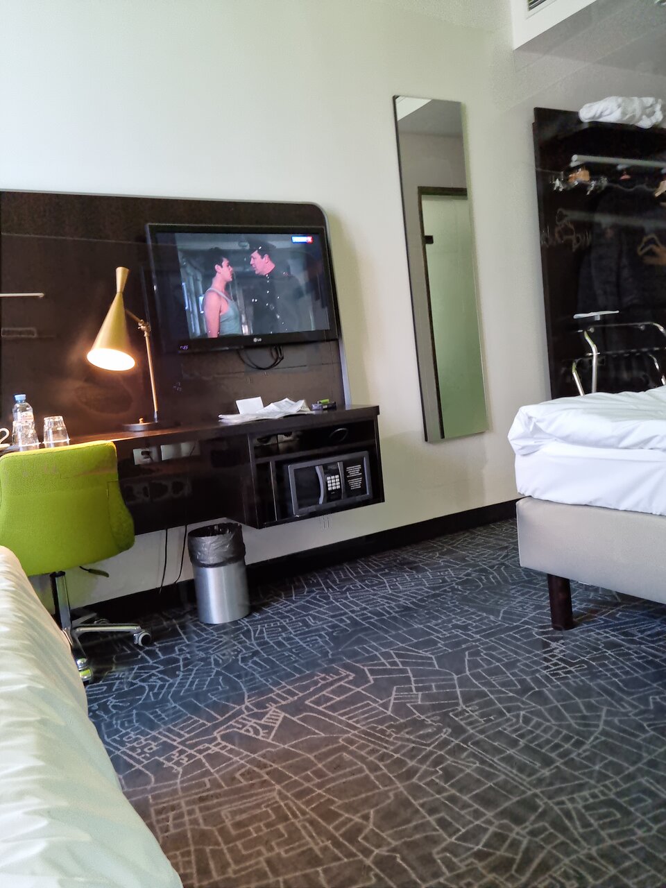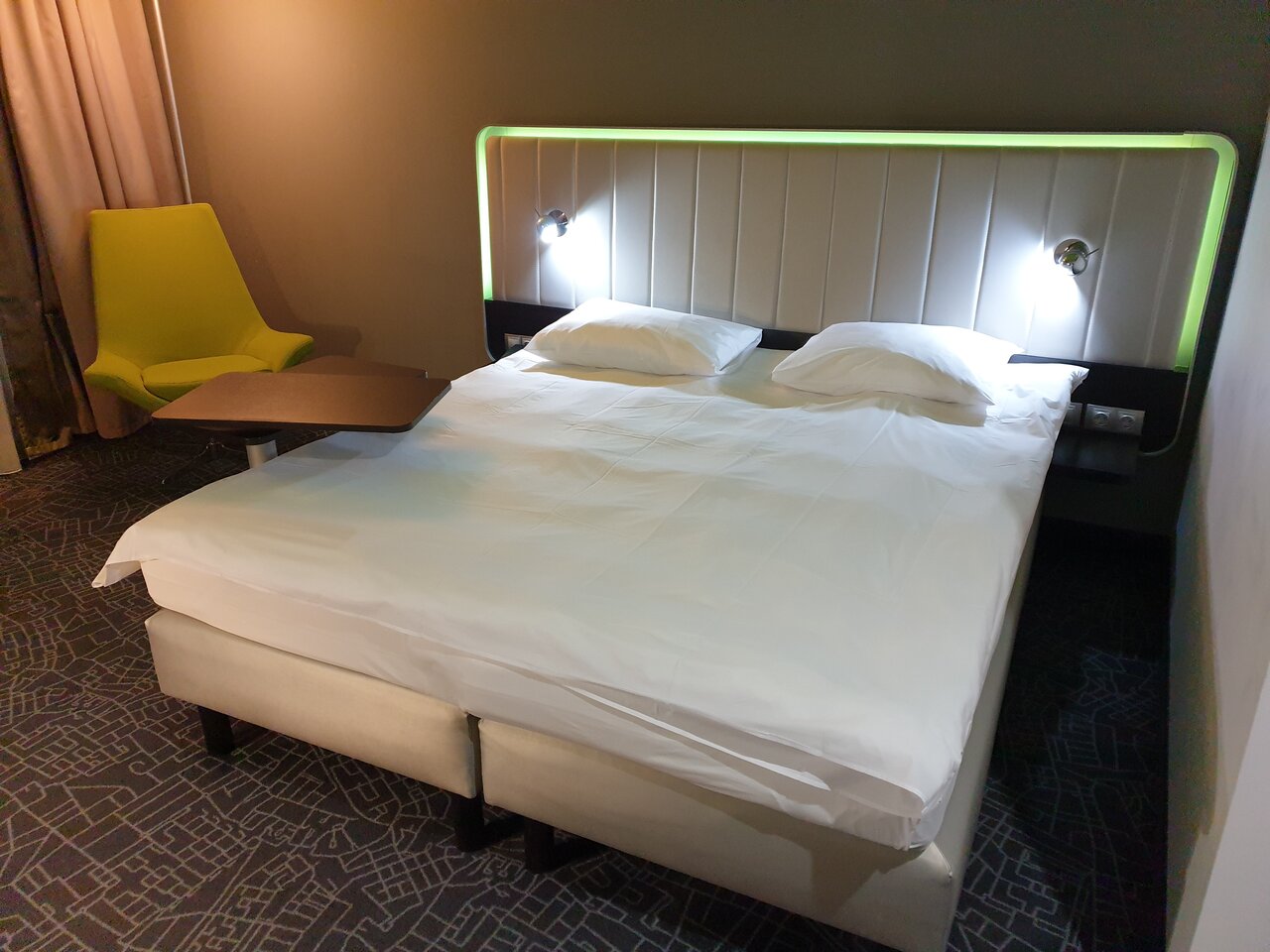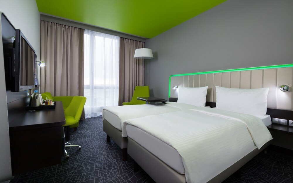 Отличный отель в двух шагах от аэропорта. Комфортный номер, вид из окна на ВПП, халаты, тапочки, белоснежное белье и полотенца, хорошая гигиеническая продукция. Отличная звукоизоляция, кондиционер, кофемашина типа неспрессо и 2 капсулы. Удобная кровать, хороший матрас средней жесткости, неплохие подушки (но могло бы быть и лучше). Из минусов — запах авиационного керосина, возможно в номерах без вида на ВПП этого нет, завтрак при стоимости 1300 за человека — скромный (сырники, каша, сосиски, отварные яйца, бекон, бобы, нарезка, овощи, хлеб, мюсли и напитки — в Пулково за эту сумму можно поесть и более вкусно и плотно. в целом цена/качество соответствуют.