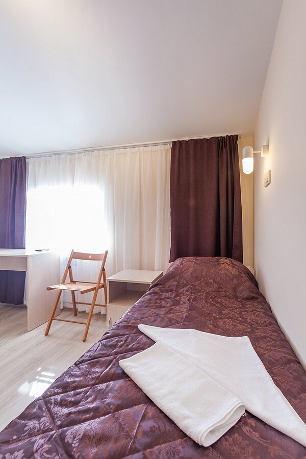 Отель очень простой, чистый и уютный. Персонал очень приятный, отзывчивый и интеллигентный. Все было просто здорово. Жила в одноместеом номере. В номере есть хороший телевизор, который хорошо работает. Есть розетки рядом с кроватью и вдоль стены, и можно включить, например, не только телефон, но и сушилку для обуви или ещё что-то необходимое на ночь. В номере есть свет маленький и большой. Завтрак очень сытный. Все замечательно. Всем спасибо.