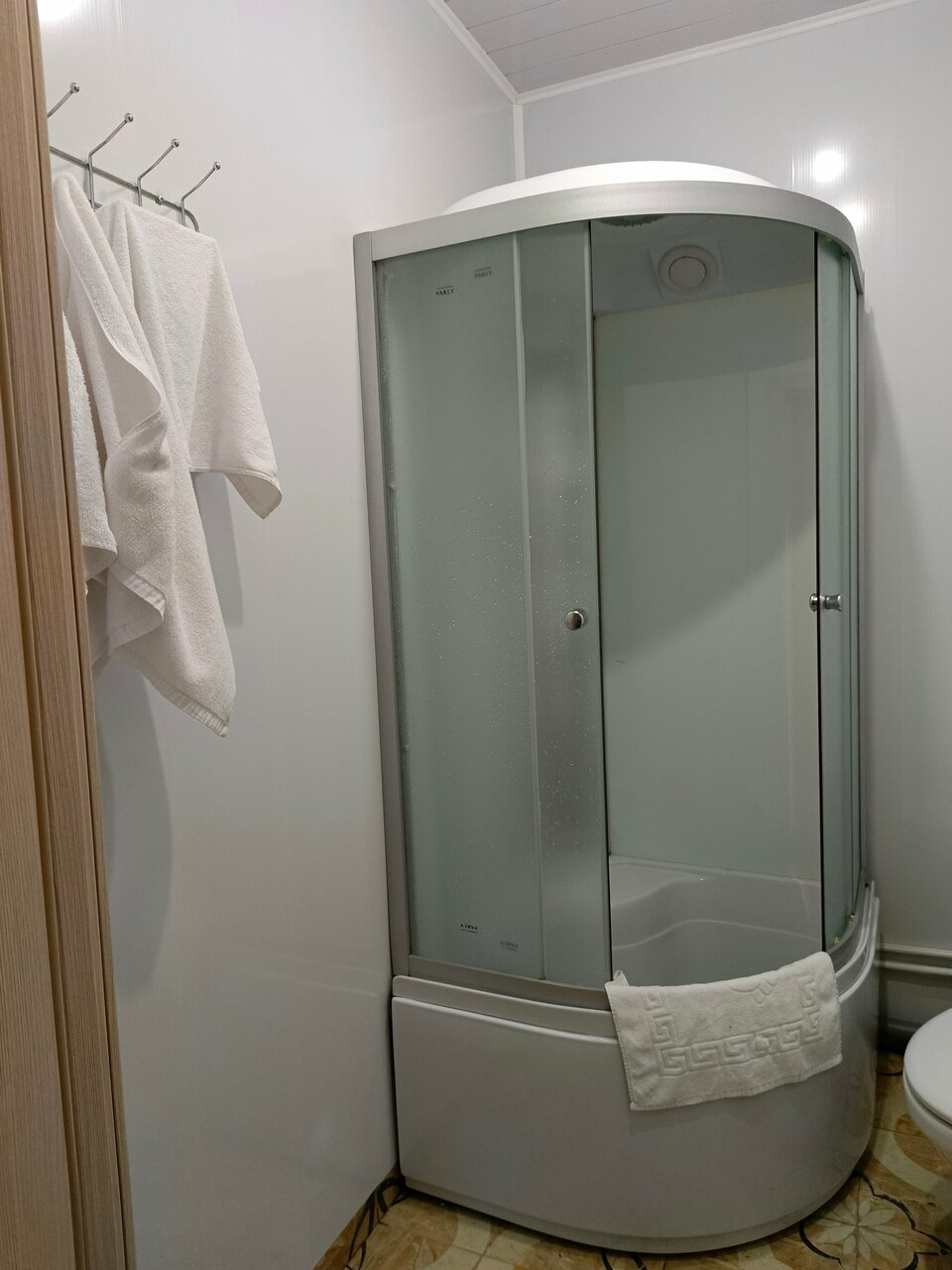 В комнате на 3 этаже очень жарко, вентилятор не спасает совсем, хотя спали с открытым окном. Днём окно тоже закрывать не надо. Кондиционера нет. Но это мы попали на 5 солнечных дней подряд. На 1 этаже нормально, т к есть окна в коридоре. На каждом этаже (из 3) есть фен, утюг, гладильная доска, сушилка, туалетная бумага. Завтрак из-за текущей ситуации был сух паёк: вкусная запаривающаяся каша, йогурт, булочка, масло, джем, в доступе кофе растворимый, чай, сахар, кулер с водой. Есть много посуды одноразовой и обычной, приборы, чайник, кофе(аппарат?) с парой уже сохраненных рецептов.