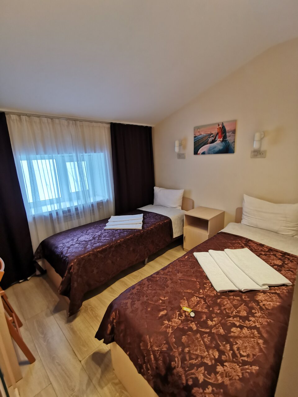 На удивление прекрасный и недорогой отель. Двухместный номер с завтраками обошёлся в 1,5 тыс. В номере чисто. Две одноместные кровати, шкаф, стол, телевизор, душ с туалетом. Всё, что нужно.)