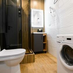 Уютно, чисто, мило. В комнате есть всё, что может понадобиться в повседневной жизни. Хотелось бы отдельно отметить — ванную: дизайн, лаконичность и удобство. Размещение в полулюксе