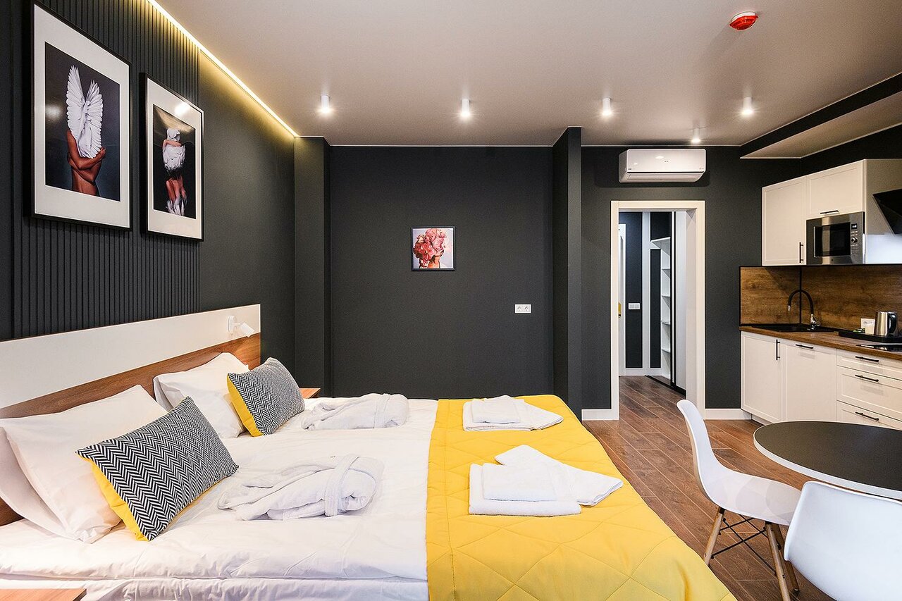 Прекрасные апартаменты за эту стоимость (заплатили около 9 000 за 3 ночи, октябрь) Очень уютно, номер обеспечен всем необходимым, что большой плюс, когда приезжаешь в командировку. Остались довольны!