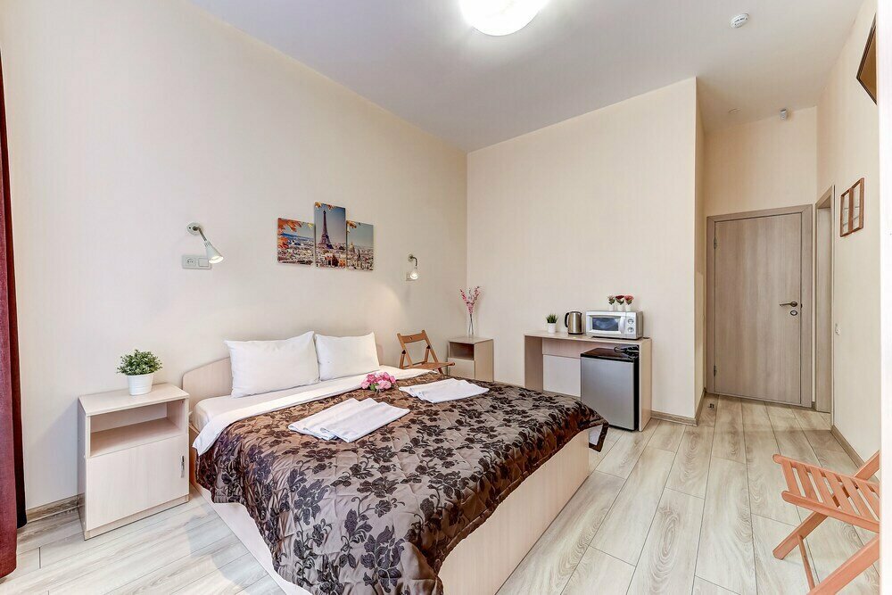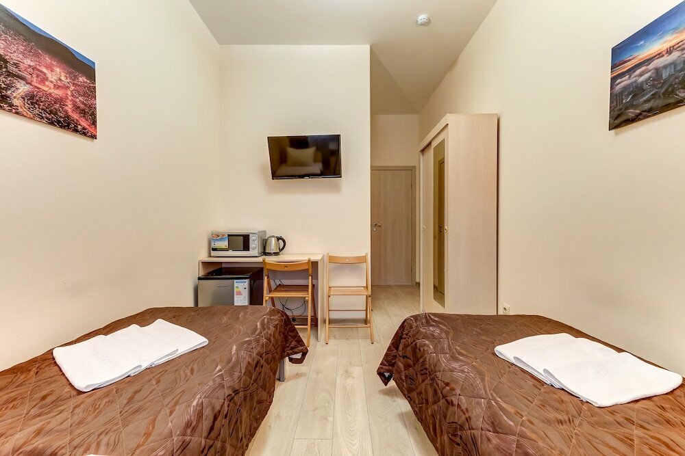 Ну недочёты были, при заезде в номер очень пахло сыростью, но нам пришлось не много вступить в дебаты с администрацией, девушка на ресепшене была очень вежлива. Мы брали завтраки кормили хорошо овсяная каша, бутерброды, нарезка ветчина сыр, овощи фрукты, чай, печенья овсяные курабье — всё было в доступе. Для меня важен фен в номере но увы и ах его не было, он есть на этаже те берёшь сушиш и обратно положил ( но это не критично самое главное он есть;) ) также на этаже! есть кулер с холодной и горячей водой , микроволновка, холодильник посуда , чай. В номерах посуды не было (мы поменяли два номера). В номере комфорт есть маленький холодильник и микроволновка. Сказать что чисто на 5 я не могу. Расположение нас устроило рядом метро площадь Восстания. Еда на 5. Персонал в нашем случае сделал всё что мог, видно что заинтересованы в клиентах, предложили альтернативу. Спасибо.