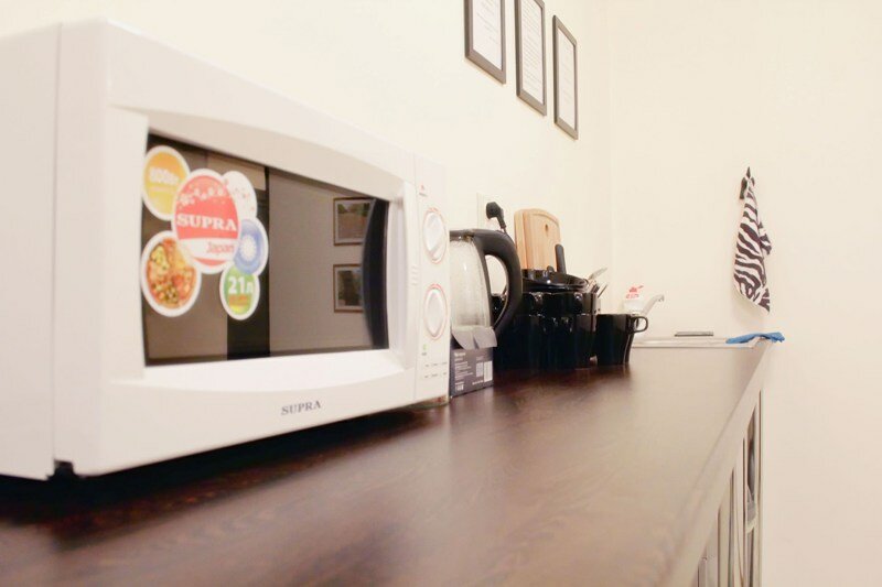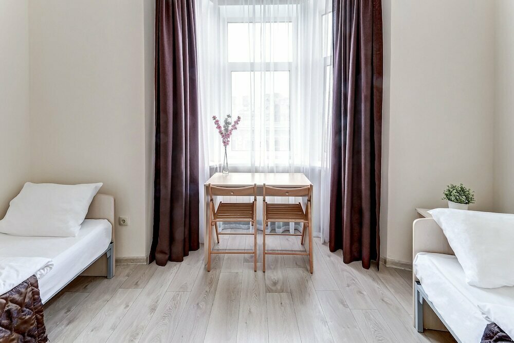 Чисто, уютно, тепло. В кухне есть кофемашина, чай, сахар, посуда. Не хватает плиты для желающих готовить. В номере микроволновка и электрический чайник. Санузел в номере. Удобное расположение, недалеко от метро Восстания и Московского вокзала. Рядом множество столовых, кафе, ресторанов, магазинов одежды.