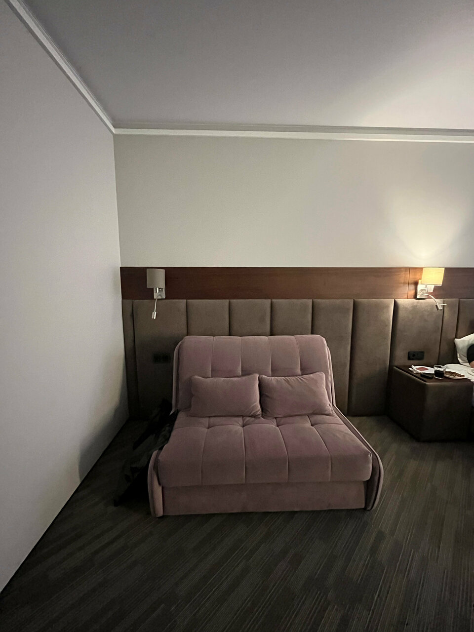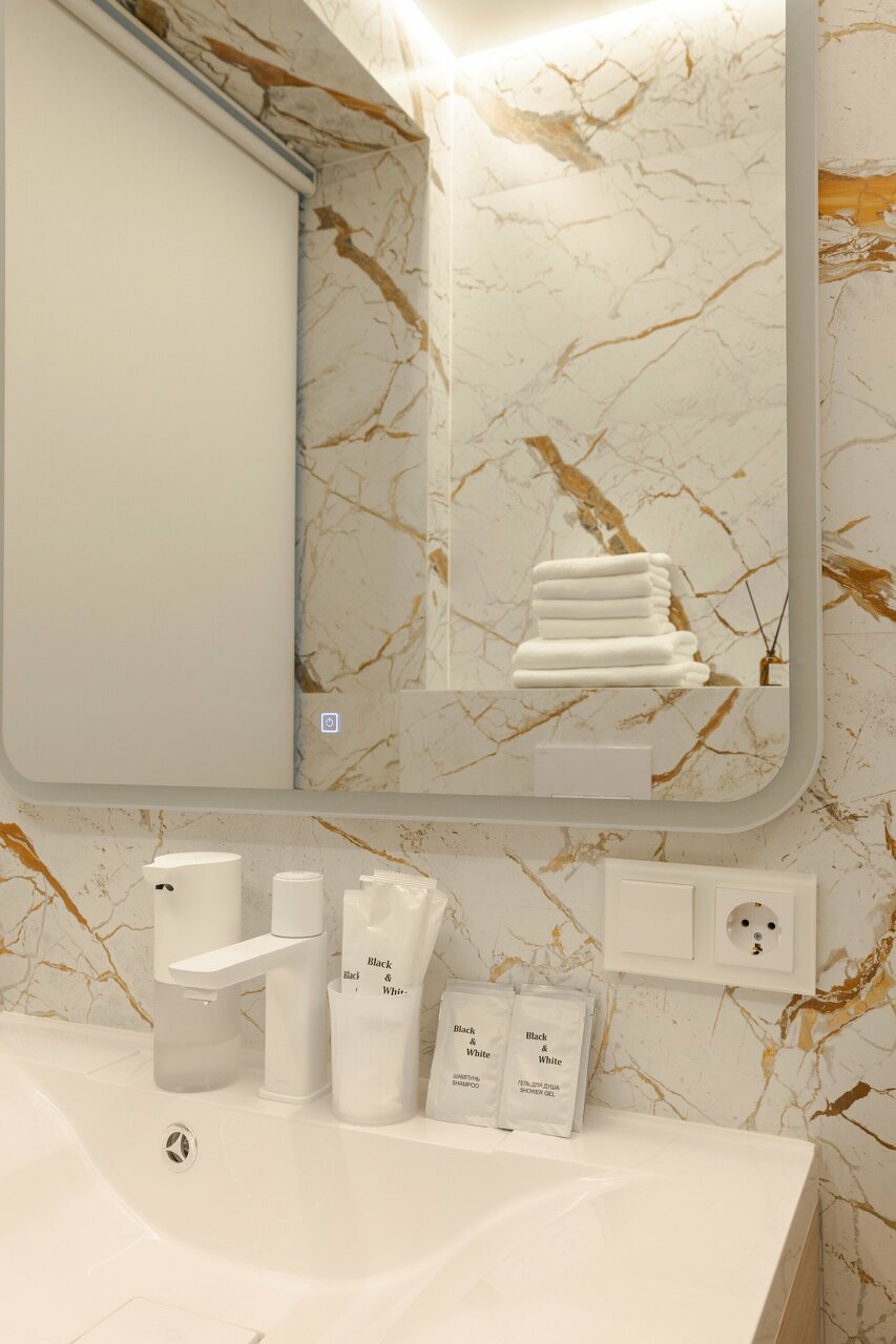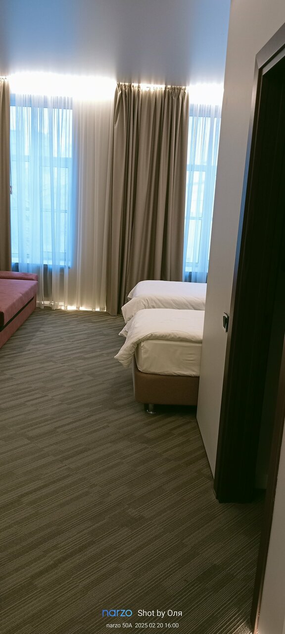 Отель новый, хороший ремонт и наполнение номера. Все решили обставить техникой под бредом xiomi. За кофемашину и телевизор 65 дюймов отдельное спасибо. Матрас высокий и удобный, белье белоснежное. Свет тоже по уму сделали. Тёплый пол и стены в ванной, удобные смесители, по кнопке. Пару минусов было, но на общее впечатление не повлияли. Минусы : горячую воду в душе сложно регулировать, начинает идти после пару минут после включения. Розетка одна не работала, с настройками климат контроля не разобрались. Не было времени и на 90% времени устроили настройки по-умолчанию.