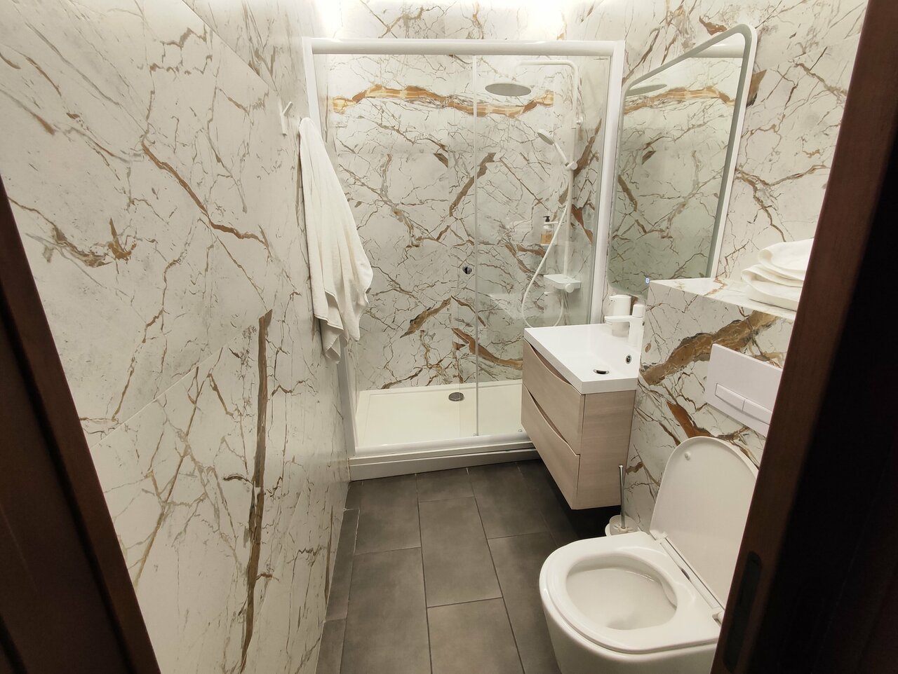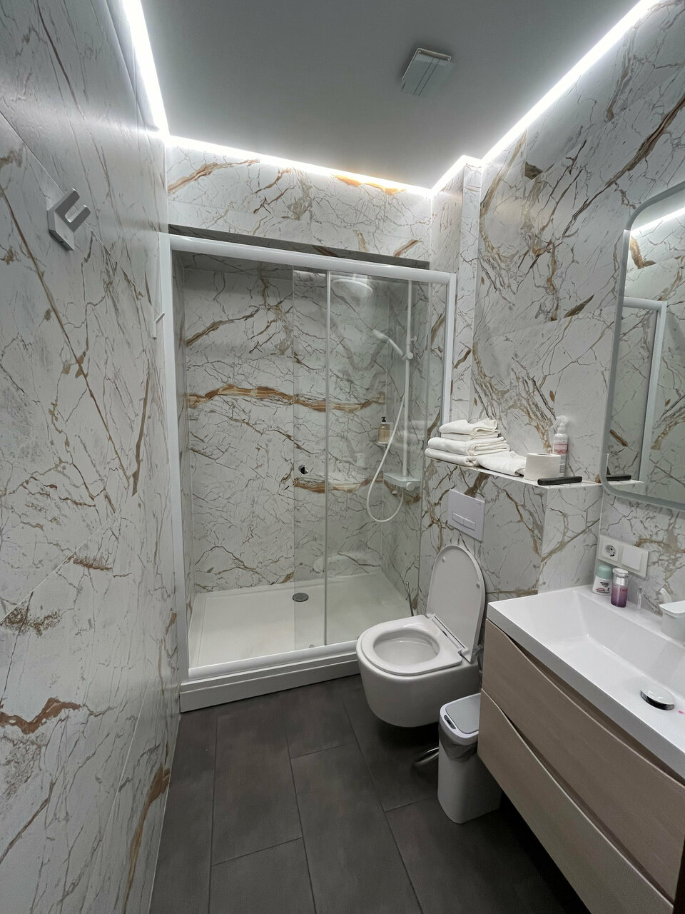 Отличные апартаменты! В самом центре, максимально удобно добираться, до основных достопримечательностей рукой подать. Сам номер прекрасный — чистое постельное белье, номер стильный и свежий, много освещения, вся сантехника в безупречном состоянии. Большой телевизор со смарт тв, капсульная кофе-машина, чай, посудомойка, чайник, плита, необходимая посуда и столовые приборы. В общем, всё есть для комфортного проживания. Нам очень понравилось, будем рекомендовать друзьям и знакомым. Спасибо за отдых!