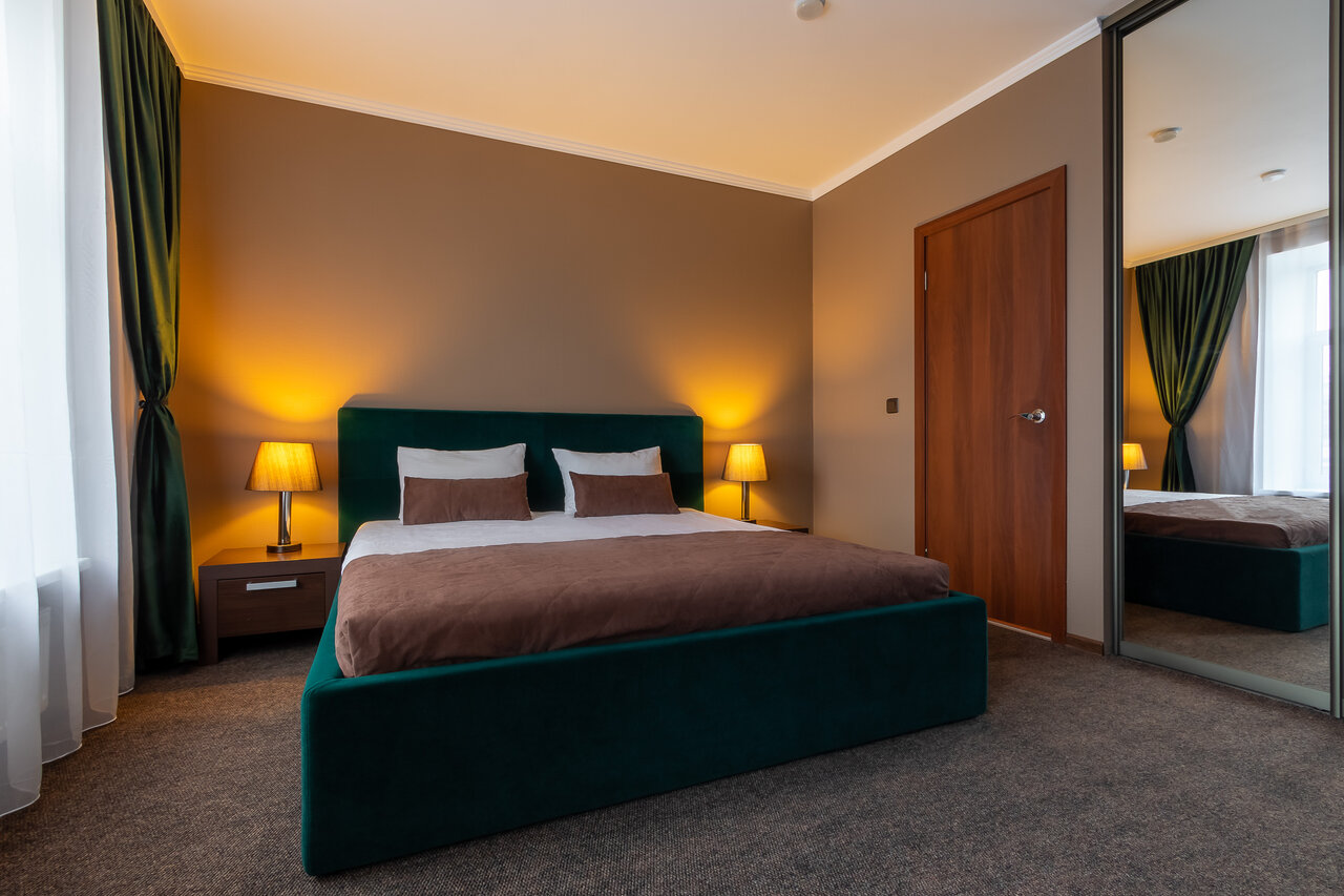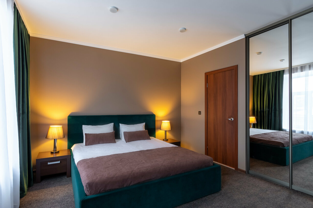 Супер номер , семейный, две комнаты, два телевизора , два холодильника. Очень чистый номер и во всем комплексе. Центр города сенная площадь , метро 50 метров , магазин в 5 шагах, столовая . Завтрак бомбический . Можно долго писать , но все к одному очень круто очень . Спасибо доброму и отзывчивому персоналу и руководству отеля за клиентоориентированность