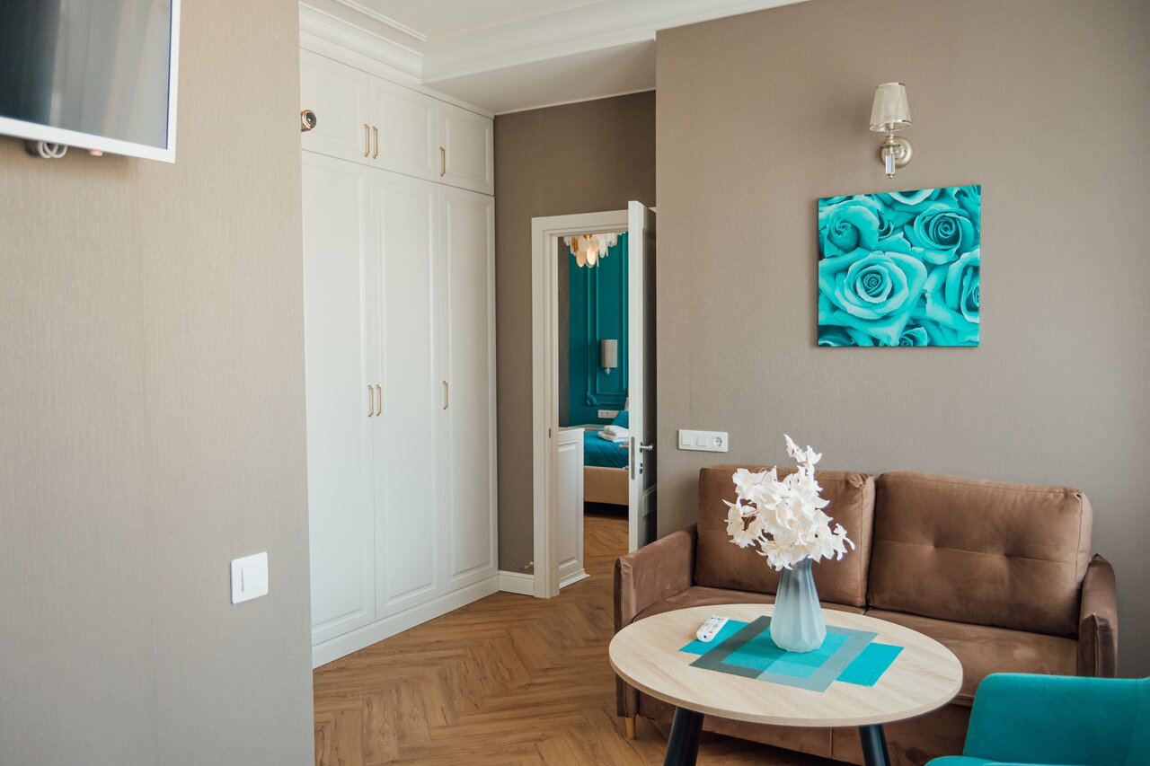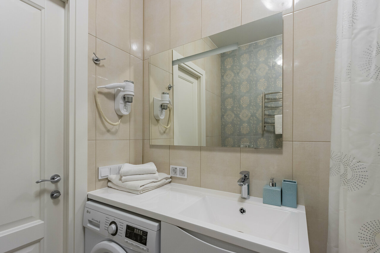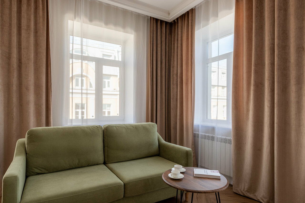 Безумно понравился номер!! Интерьер одно эстетическое удовольствие Очень вежливый и внимательный персонал. Мы снимали апартаменты, в номере очень просторно, хорошая звукоизоляция, есть стиральная машина и холодильник. Включён завтрак, разнообразный выбор блюд, можно вкусно и сбалансировано покушать. Расположение — минута от метро, рядом есть много магазинов, аптек. Обязательно вернёмся сюда ещё)
