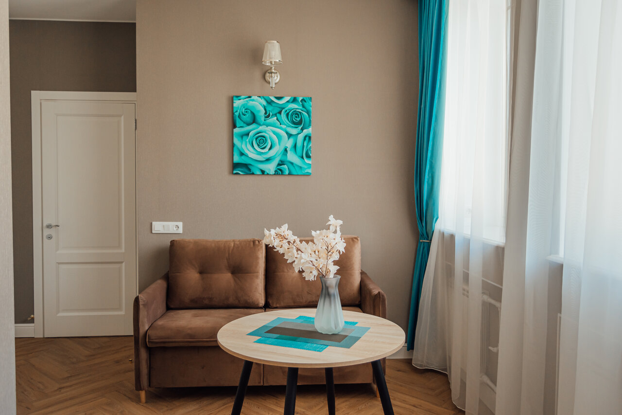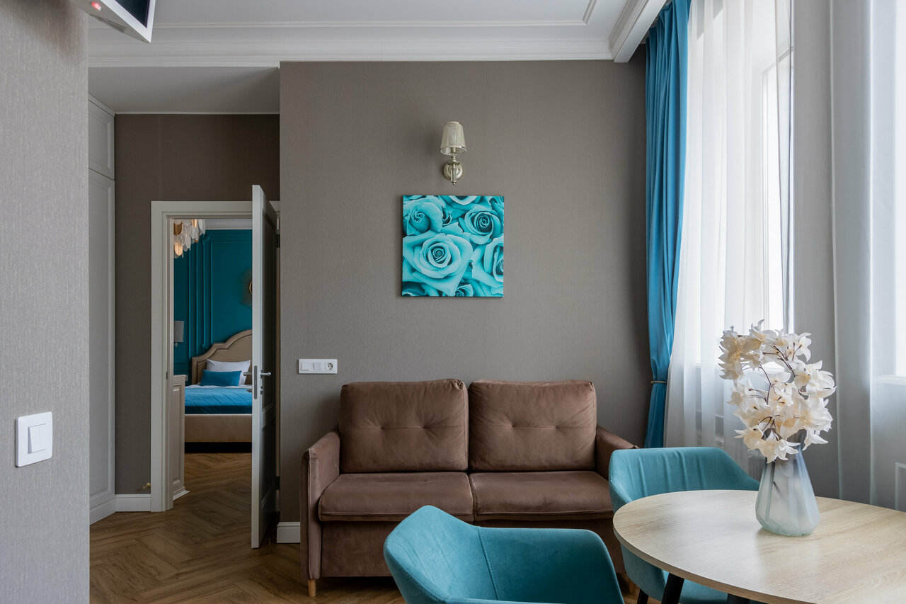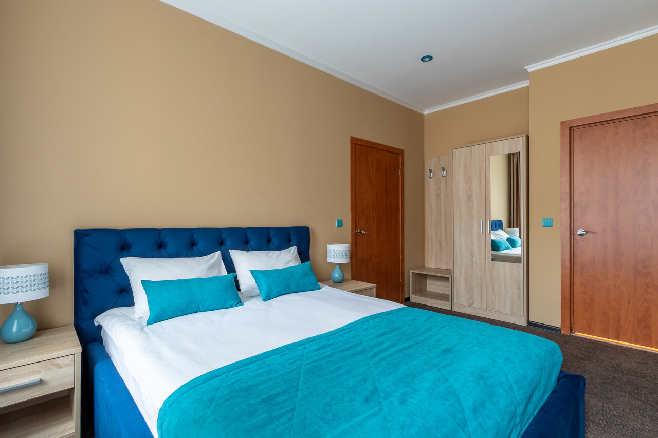 Безумно понравился номер!! Интерьер одно эстетическое удовольствие Очень вежливый и внимательный персонал. Мы снимали апартаменты, в номере очень просторно, хорошая звукоизоляция, есть стиральная машина и холодильник. Включён завтрак, разнообразный выбор блюд, можно вкусно и сбалансировано покушать. Расположение — минута от метро, рядом есть много магазинов, аптек. Обязательно вернёмся сюда ещё)