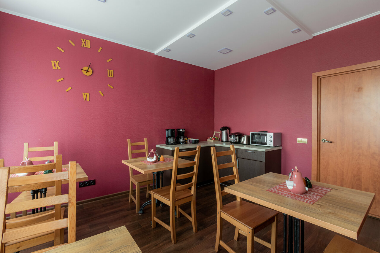 Расположение в центре рядом с метро, цена адекватная, чисто, есть кондей, обогреватель, холодильник, тв, горячая вода и санузел в номере. В цену входит завтрак в виде шведского стола. Приеду ещё.