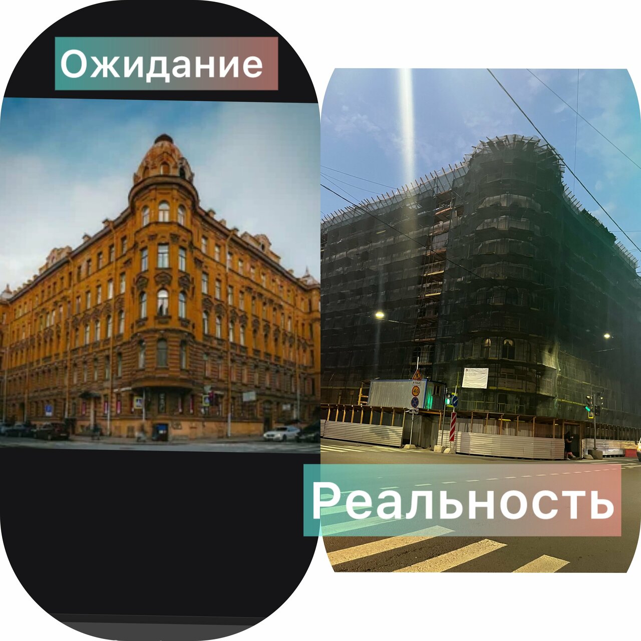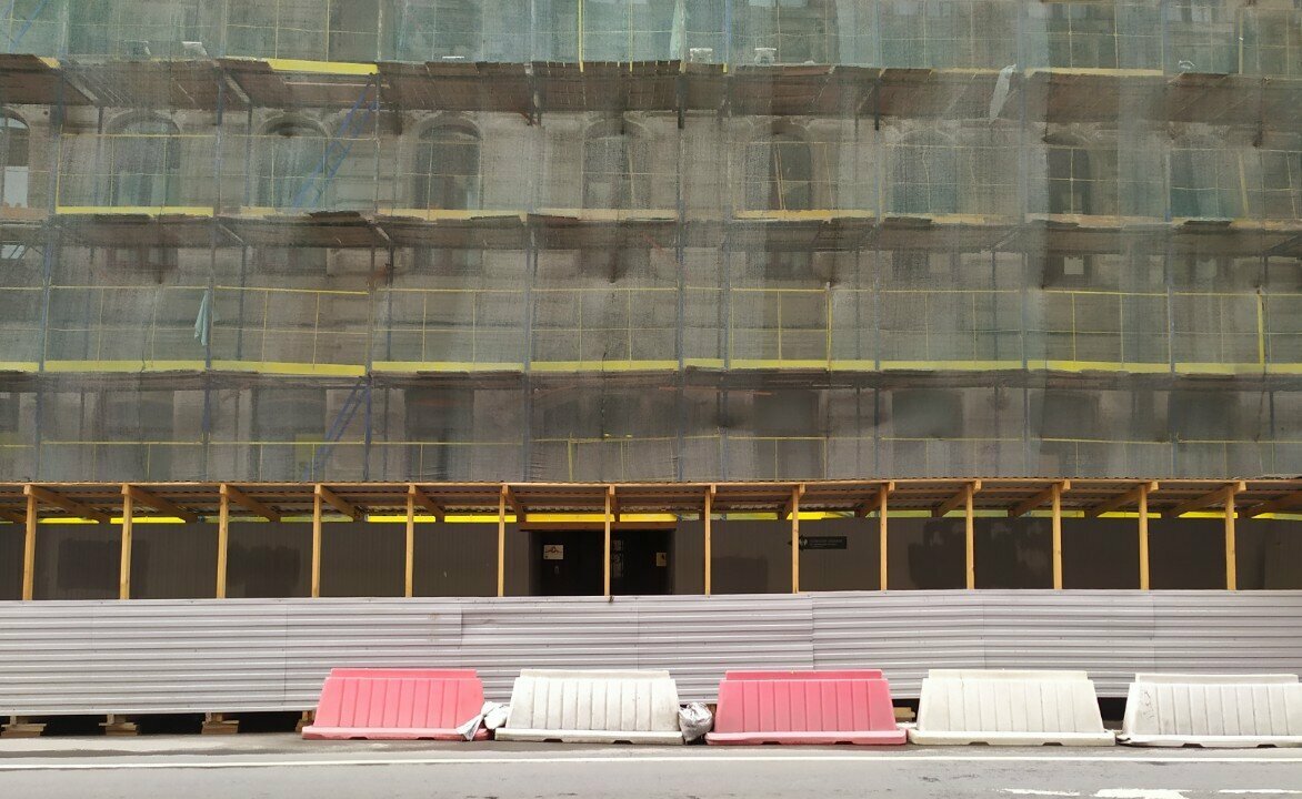 - Дом на реставрации (леса вокруг).