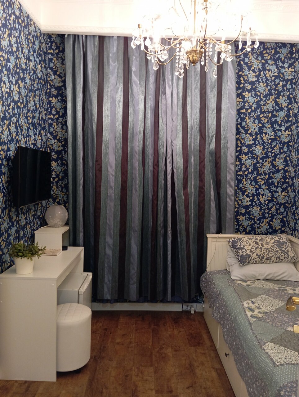 Наш визит выдался на аномальную жару, отчасти поэтому размещение не понравилось и пришлось съехать в соседний отель чуть дороже, но с более человеческими условиями. Из достоинств — хорошее расположение в центре, в 15 минутах две станции метро. Приятная отделка под старину. Из недостатков — нет парковки, нет лифта, нет кондера, нет шкафа, нет персонала на входе (а постояльцы распахивают входную дверь), разломанное кресло с торчащими гвоздями, незакрывающаяся дверь в санузел, рой комаров по ночам. В целом наверное жить можно, но мы привыкли к более комфортным условиям и сменили отель. Денег за неиспользованные ночи нам не вернули, мы не обеднеем, но это тоже показатель сервиса. Решайте сами, надо ли оно вам.