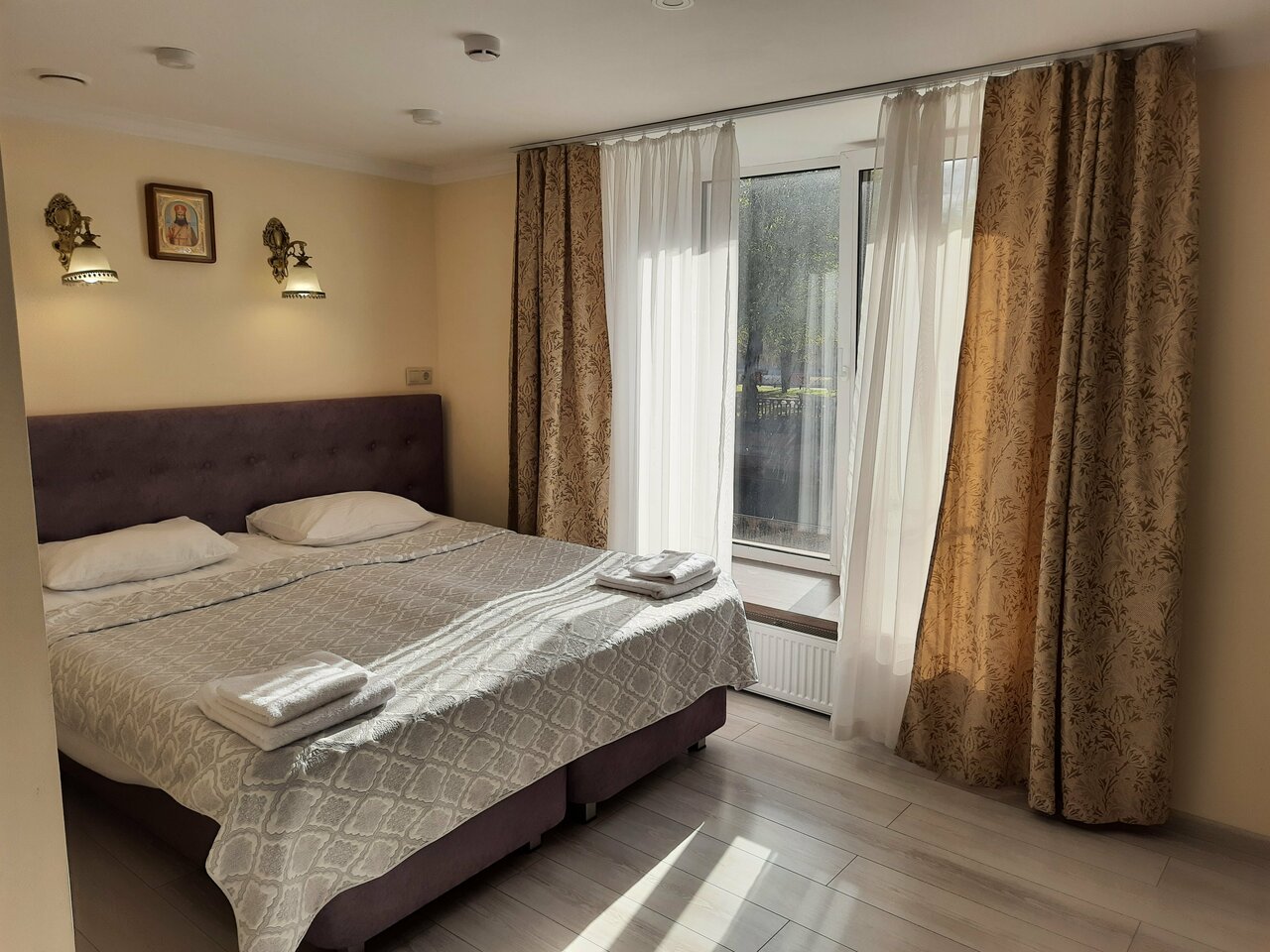 Отличное местоположение , рядом с Никольским собором, очень тихое и благостное место. Очень хотели тут провести наш отпуск.. Но к сожалению не успели забронировать места.. Все было уже занято.. Надеюсь пожить тут в следующий раз Номера очень уютные, разной категории, но все уютные и чистые. Цена просто шикарная за такой сервис! Так держать! Рекомендую