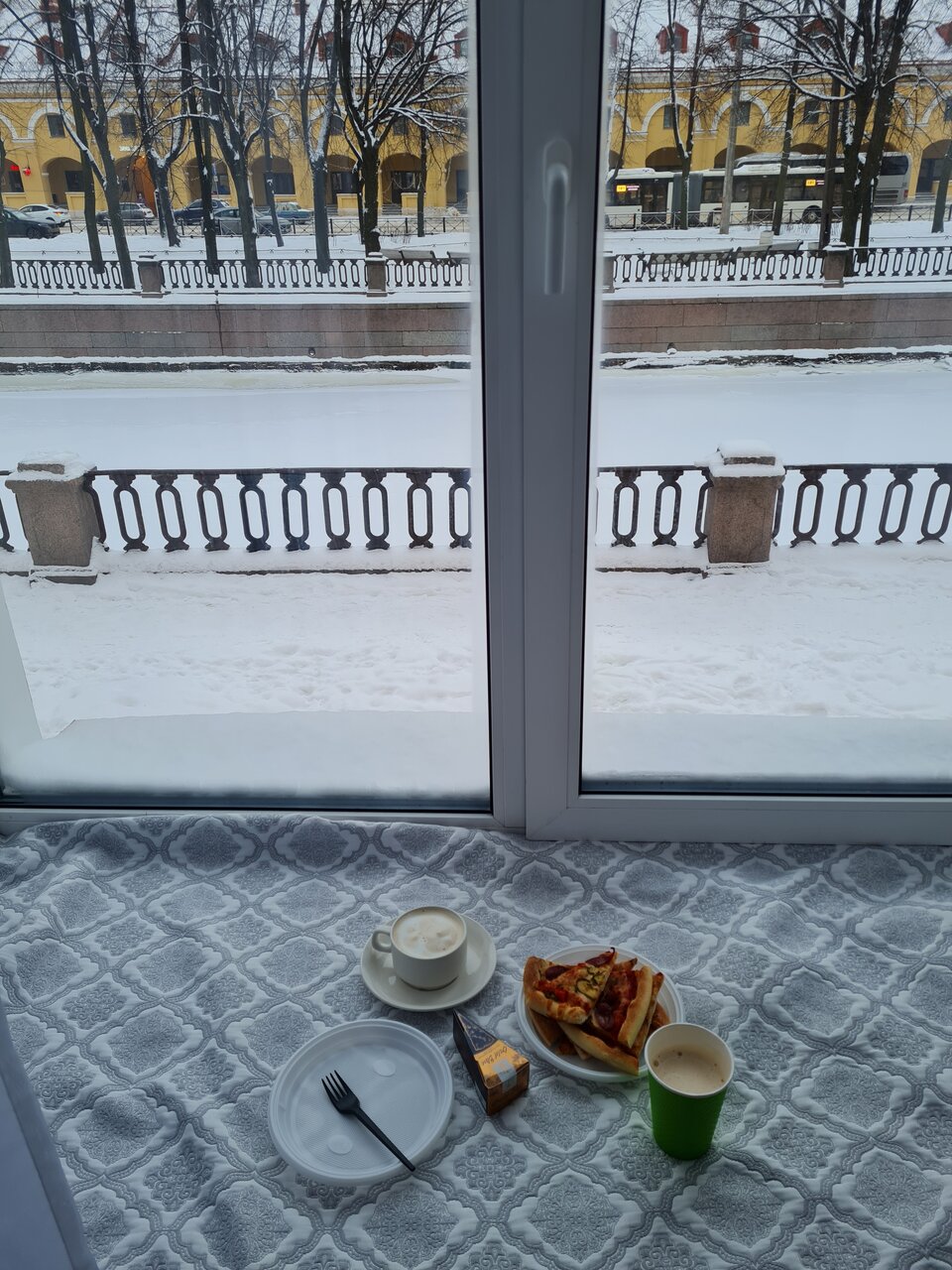 - Вид из окна (на собор, набережную, канал Грибоедова).
