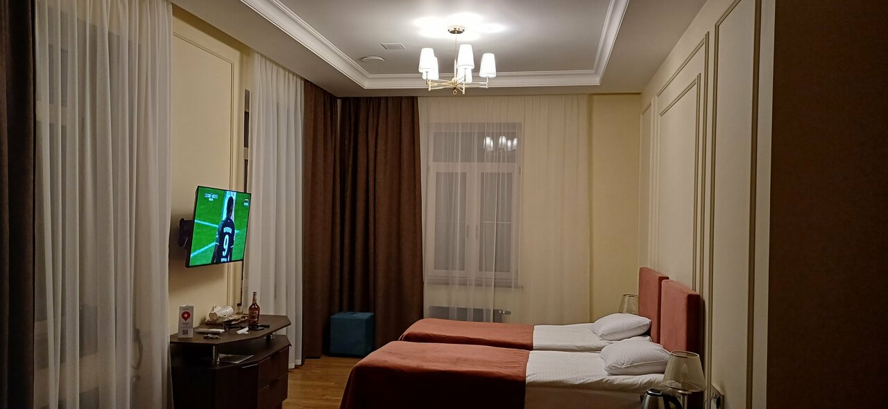 Отличное место. Останавливались в номере с кухней, замечательно располагались впятером, большая площадь номера по сравнению с конкурентами. Стоимость тоже очень порадовала. Новые номера, современный ремонт, центр города, пятерочка в здании отеля, прачечная напротив. Из минусов-пока нет трапезной, но это решаемо, рядом много мест на любой бюджет.