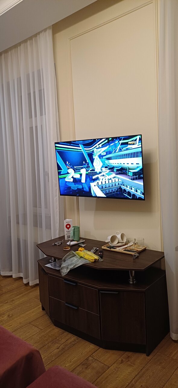Двухкомнатный люкс номер с двумя с/у (ванна и душевая);2-х местная king-size кровать, диван на 2-х взрослых;Чайник, кофе-машина в каждом номере.Все номера укомплектованы посудой.В каждом номере имеется холодильник;В бронирование включены завт...