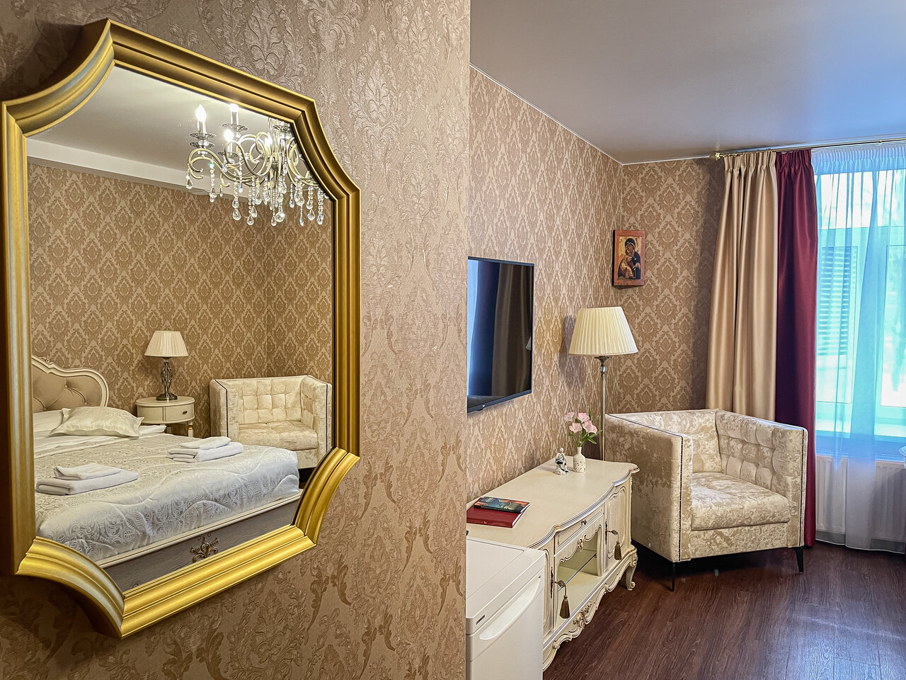 Очень уютный отель. Просторные номера, удобные кровати, есть кулер на этаже, диванчики. Вкусный завтрак. Приветливый персонал. Единственное, что слегка смутило, это вид из окна на склад гранитных памятников. Но это неудивительно, потому что рядом кладбище. Но впечатлительных людей может немного испугать.