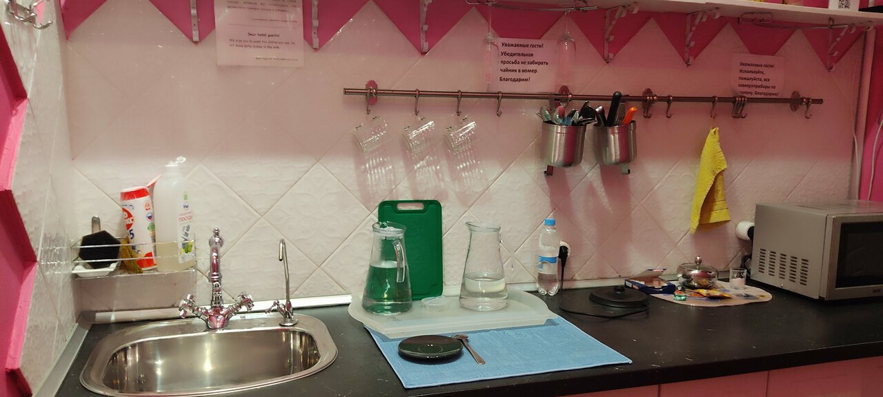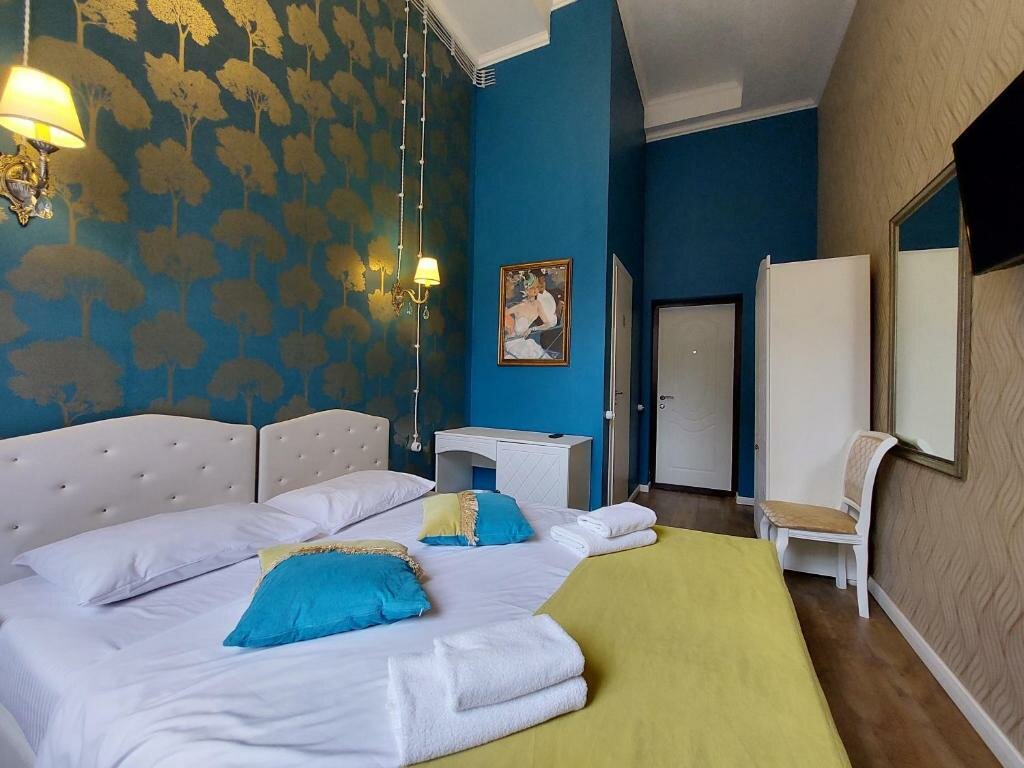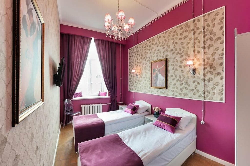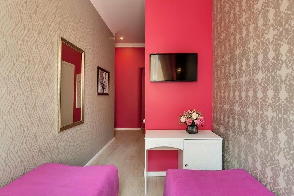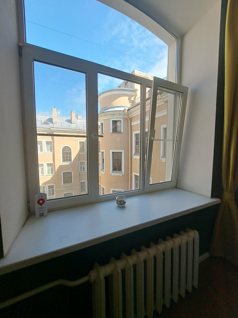 Небольшой отель находится на 4 этаже старого жилого дома и занимает одно крыло. Подъезд тёмный, с плохим освещением, старыми с выбоенами ступенями, требующий ремонта. Вывески с информацией о том, что здесь находится отель при входе в подъезд, нет. Табличка с названием отеля только на 4 этаже. При бронировании номера, сотрудники отеля будут с вами всегда на связи, пришлют подробную инструкцию, как найти отель, как зайти в подъезд, как пройти к лифту и т.д. Радует, что в подъезде есть лифт, хоть и маленький, старенький. Сам отель довольно приятный, яркий, есть все необходимое. В номере удобные кровати, свежее постельное белье, мягкие подушки. Также есть телевизор, столик, прикроватная тумбочки, небольшой холодильник. Каждый день оставляли средства гигиены (гель для душа, шампунь, мыло). Санузел в каждом номере, с душевой кабиной, феном.