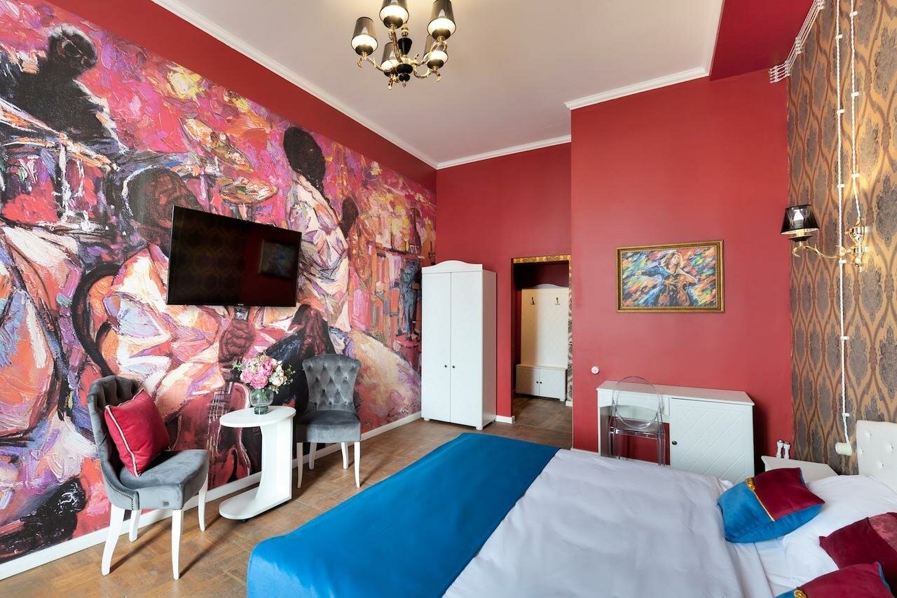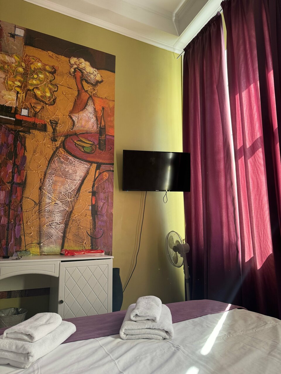 В красной комнате не было кондиционера и скажу вам, это прям жесть в летний день… Надеюсь спустя год исправили. Отельчик переоборудован из старой большой квартиры с высоким потолком, номера разрисованы с придумкой. Санузел в номере есть, но надо понимать, что он хенд мейд вмонтирован, а не центральный. То есть шумно, тесненько, и за душевой кабинкой уже забили выгребать исправно падающие туда зубные щётки Расположение в несуетном квартале, круглосуточный магазин еды рядом. В целом вернулась бы, но некомфортное спальное бельё и вентиляция….. ((((
