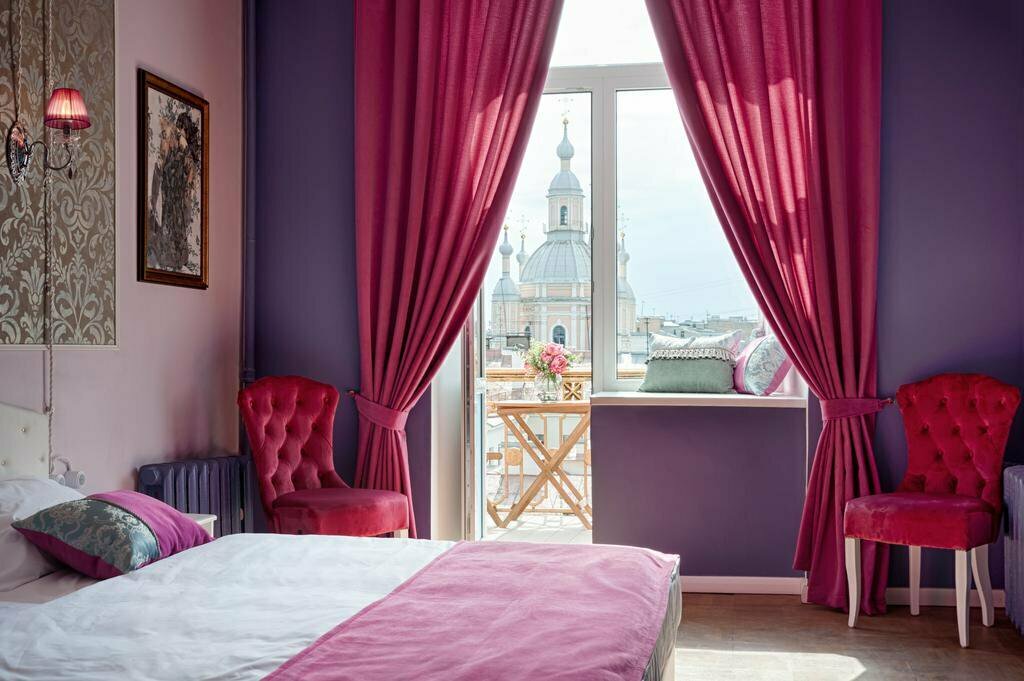 Номер люкс с балконом идеально подходит для семейного размещения, а также для тех, кто хочет наслаждаться прекрасным видом на Питер напрямую из номера.