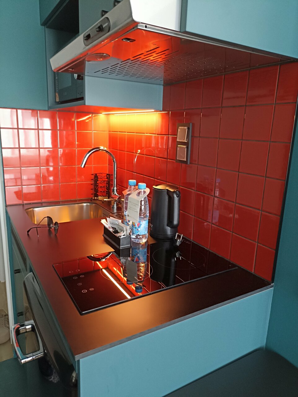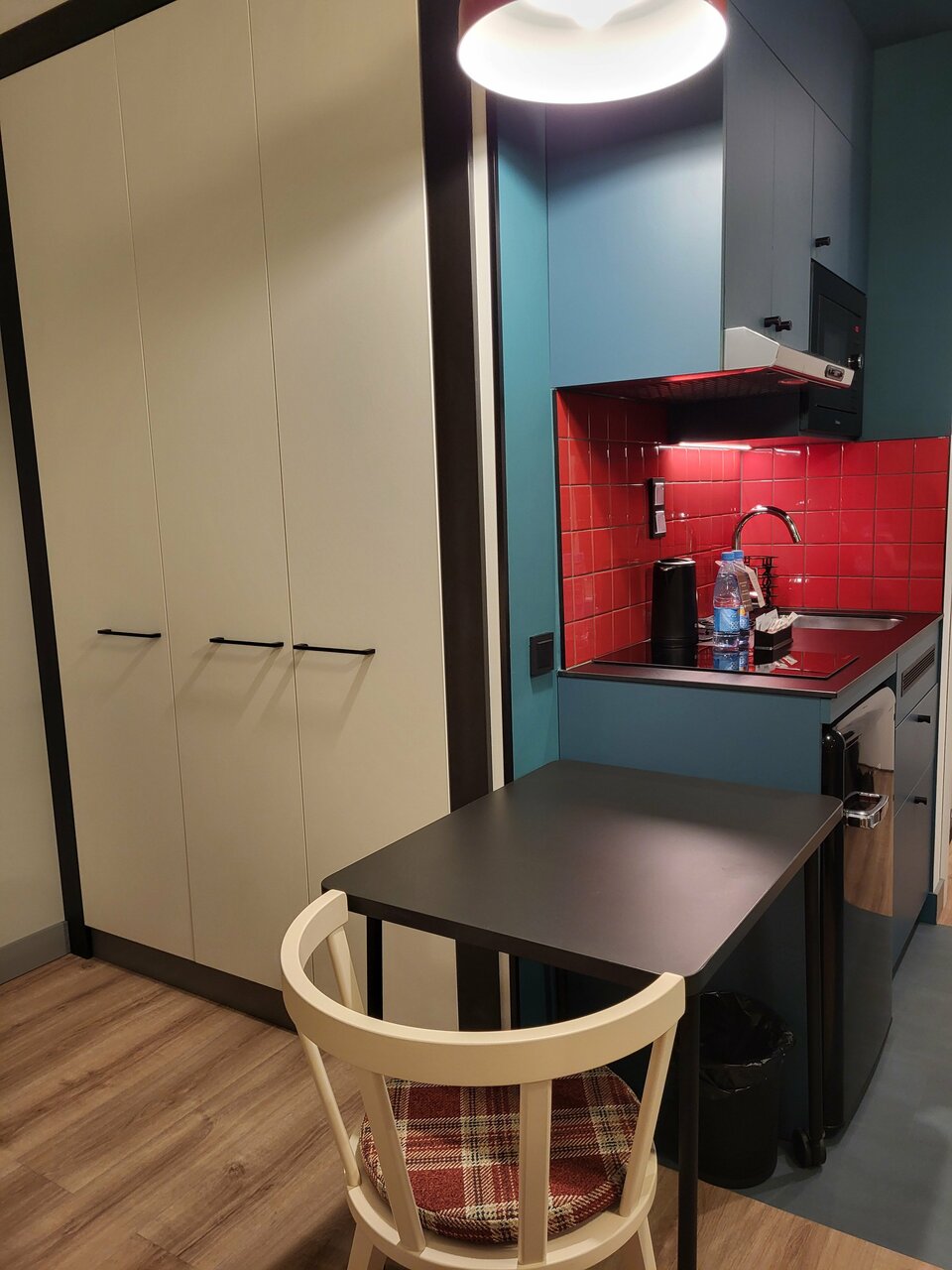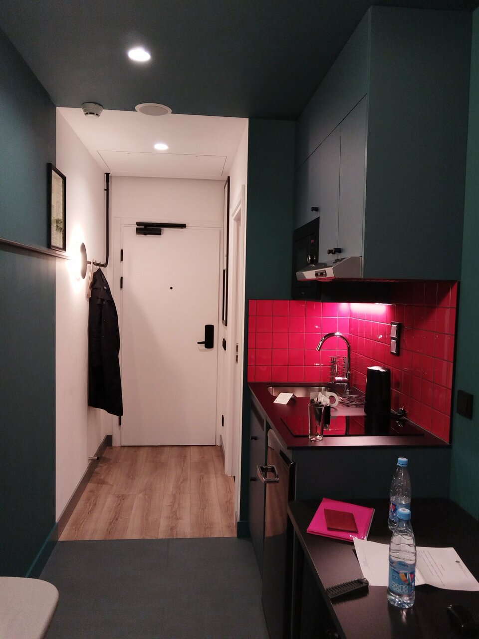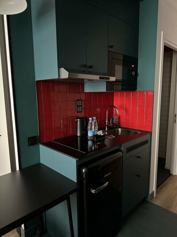 Новый, чистый, современный. Апартаменты удобные, есть все необходимое для приготовления еды. В отеле и в номере все блестит от чистоты. Расположение удобное, рядом метро, множество магазинов и кафе.