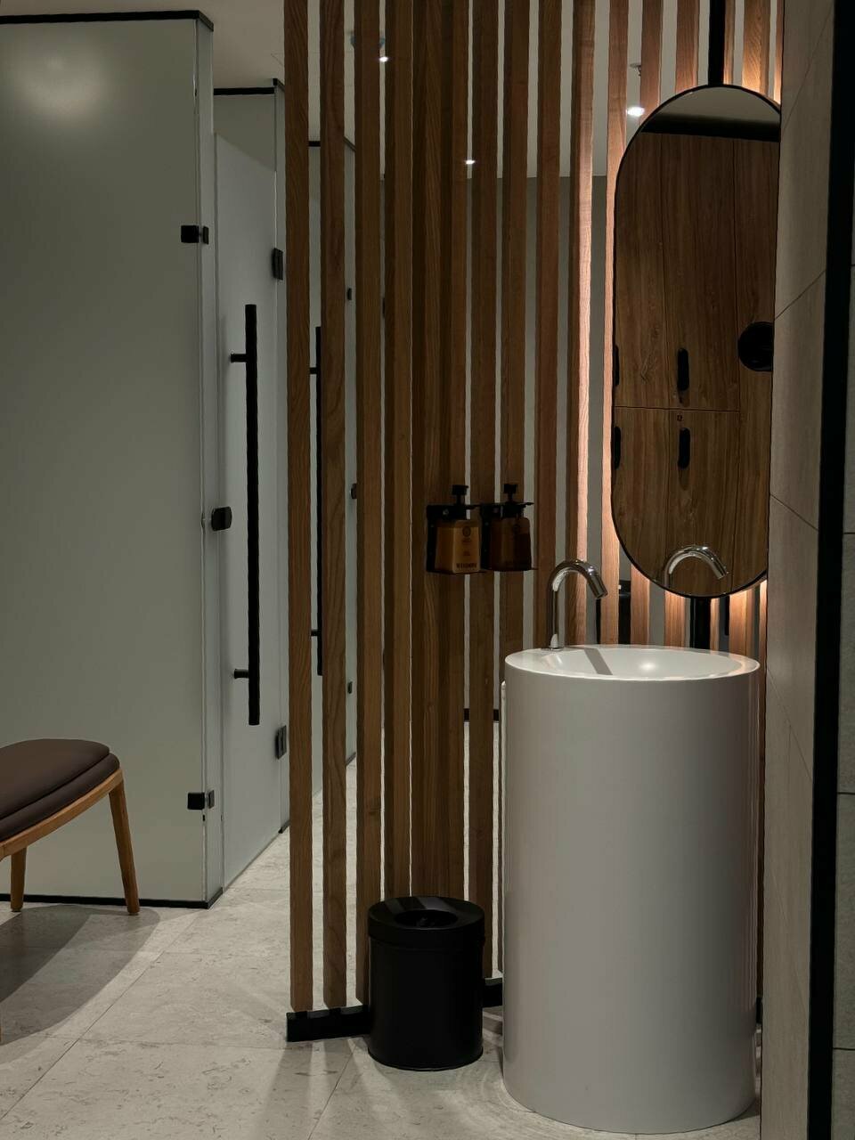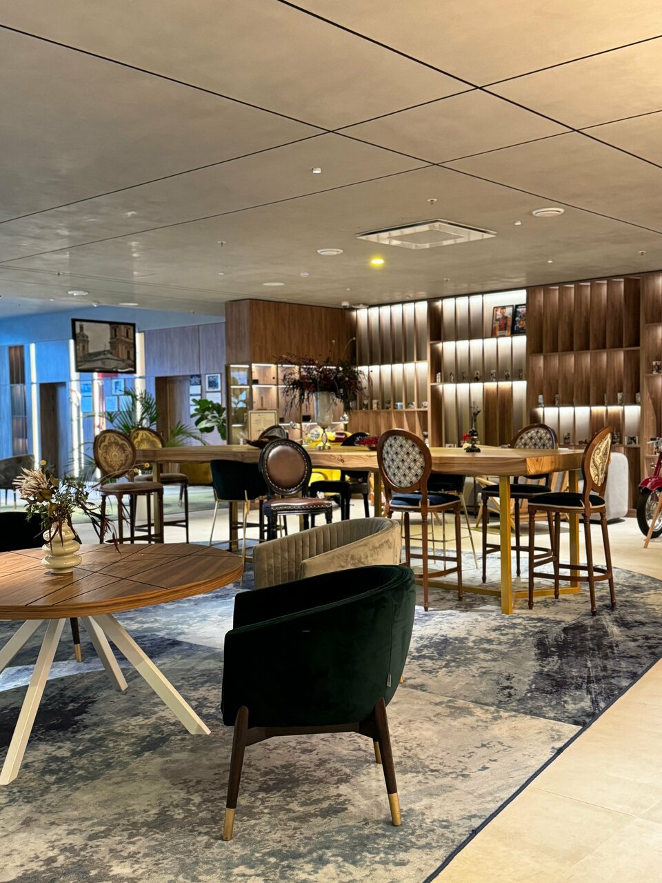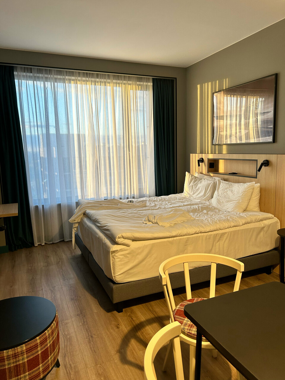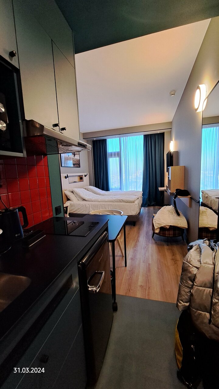 Останавливались в этом отеле в конце сентября 2024г., отель расположен рядом с аэропортом, что очень удобно. Сам отель современный, с красивыми просторными номерами, есть кухонный уголок, где есть чайник, плита и посуда. В отеле очень вкусные разнообразные завтраки. На первом этаже есть круглосуточный бар.